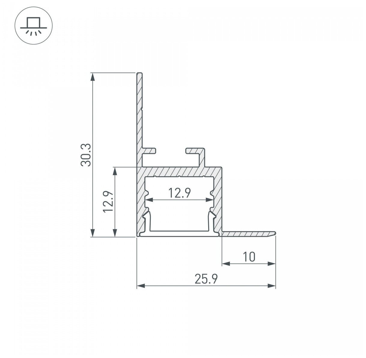 Встраиваемый профиль с накладным фланцем из анодированного алюминия для контурной подсветки ниш, карнизов и углов. Габаритные размеры профиля составляют 2000 мм в длину, 26 мм в ширину и 30,3 мм в высоту. Площадка для установки светодиодных лент позволяет использовать ленту шириной до 12,9 мм и мощностью до 25 Вт/м. Это обеспечивает гибкость в выборе светодиодных лент и создает потрясающие световые решения. Отличное решение для создания современных световых проектов.