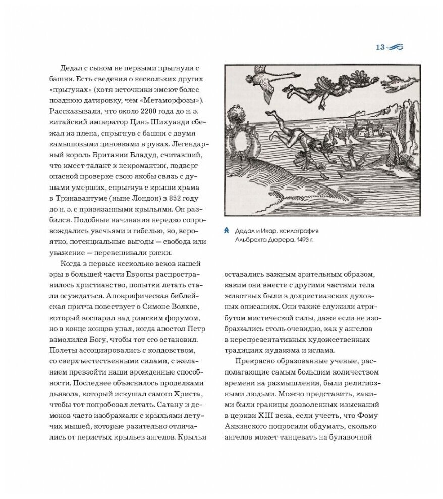 Красочно оформленная книга.Шрифт крупный, текст разбит на два столбца, но не отформатирован по ширине. Прочитала за два дня. Двоякое впечатление - с одной стороны получила общее представление о развитии воздухоплавания, с другой - как и заявлено во введении книги, содержимое текст а определяется имеющимся иллюстративным материалом из британских библиотек. Как следствие, упомянуты в основном английские и британские инженеры и летчики. Есть упоминания о немецких и американских летчиках. Для первого беглого знакомства с темой вполне подходит.