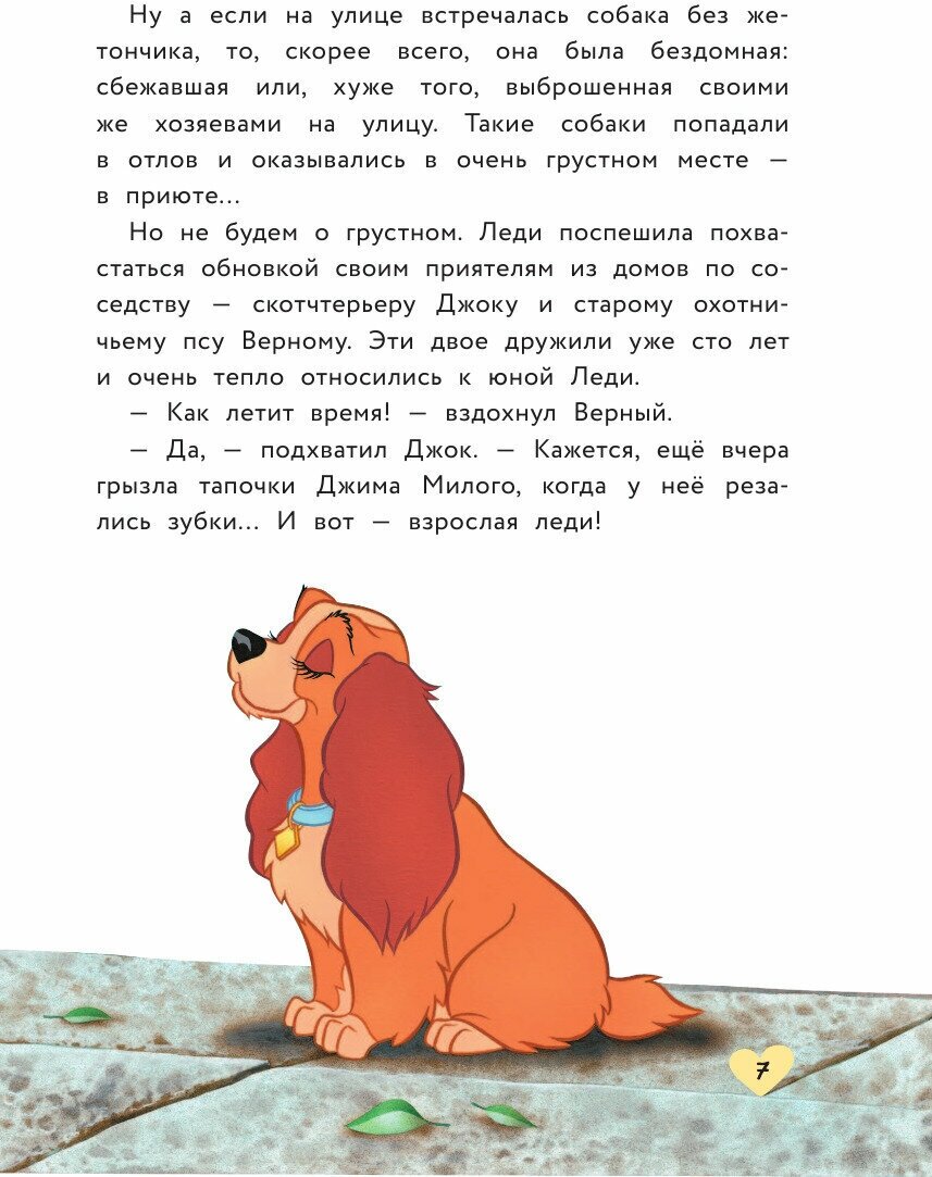 Леди и бродяга отличная книга по мотивам дисныевского мультфильма. Сама по себе серия книг большая. Книга яркая, шрифт крупный. Ребёнок может читать сам. Иллюстрации красочные, словно вырезанные из мультфима. Книга сама компактная, весит не много. Можно брать с собой. Очень довольны. Ждём пополнения серии другими историями.