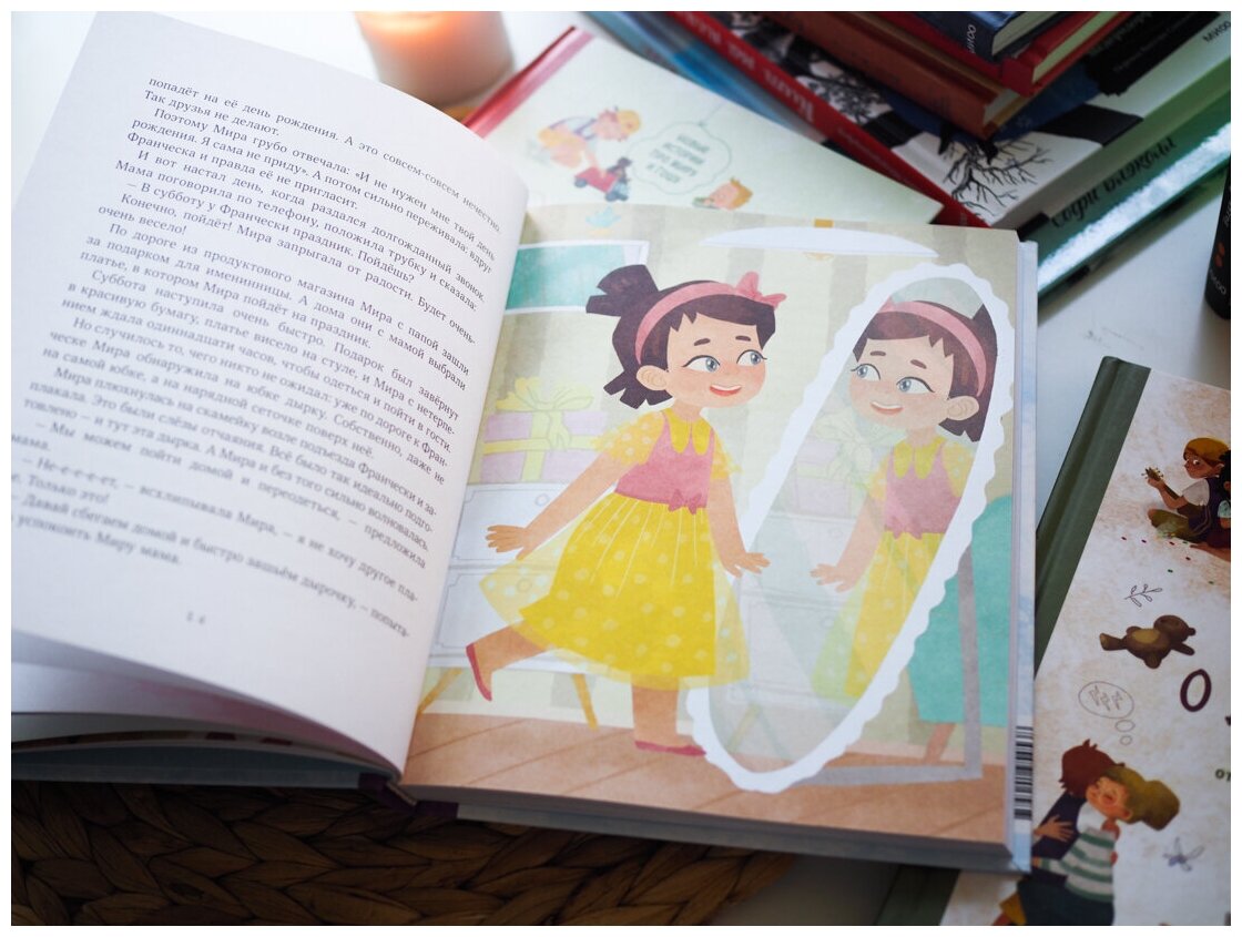 10 историй из жизни двух детей — Миры и Гоши — сопровождаются комментариями психологов и списком вопросов. Эти вопросы помогут обсудить проблемы обмана, воровства, дружбы, гендерных игр — тем, с которыми сталкивается каждая семья.