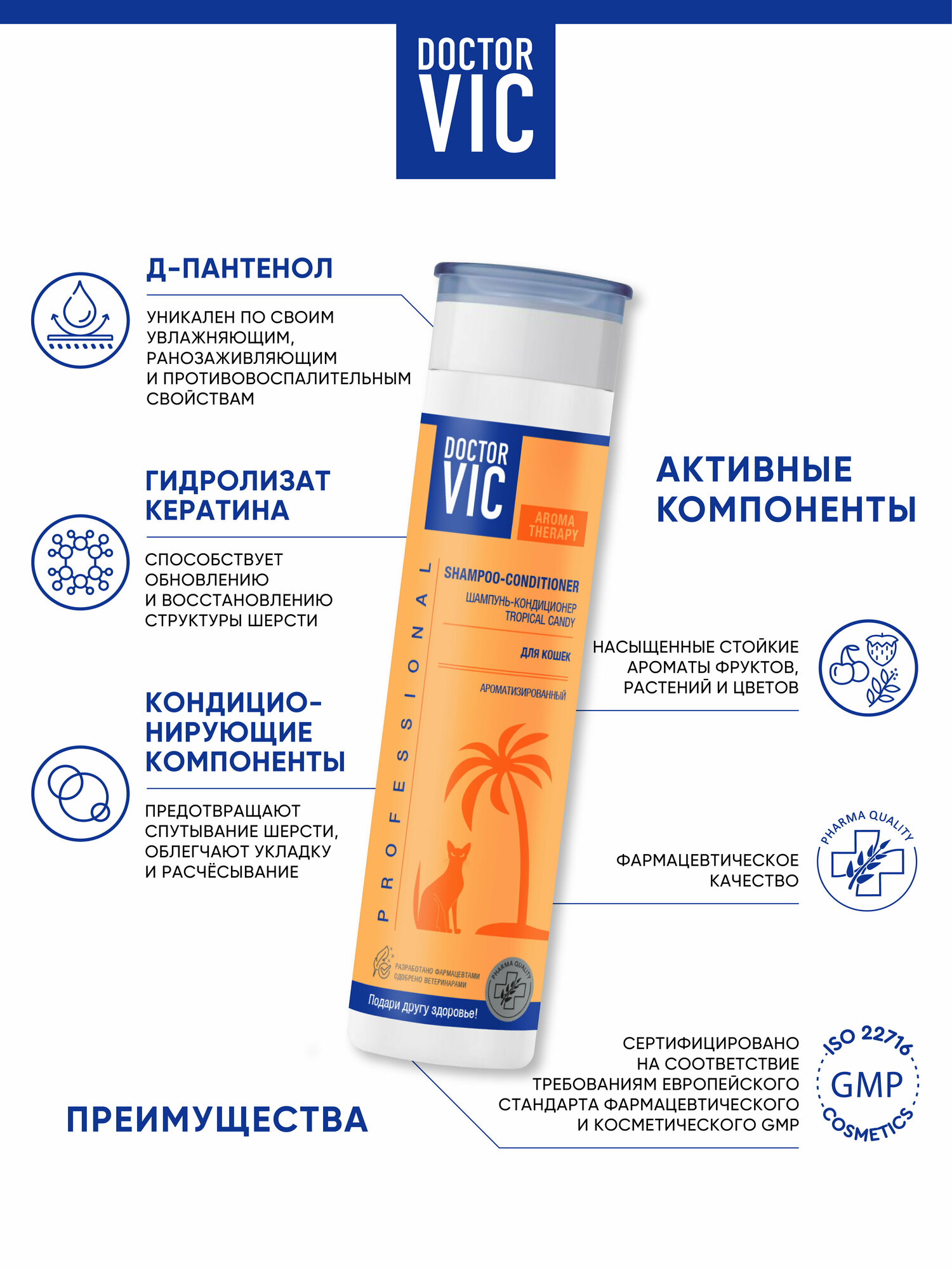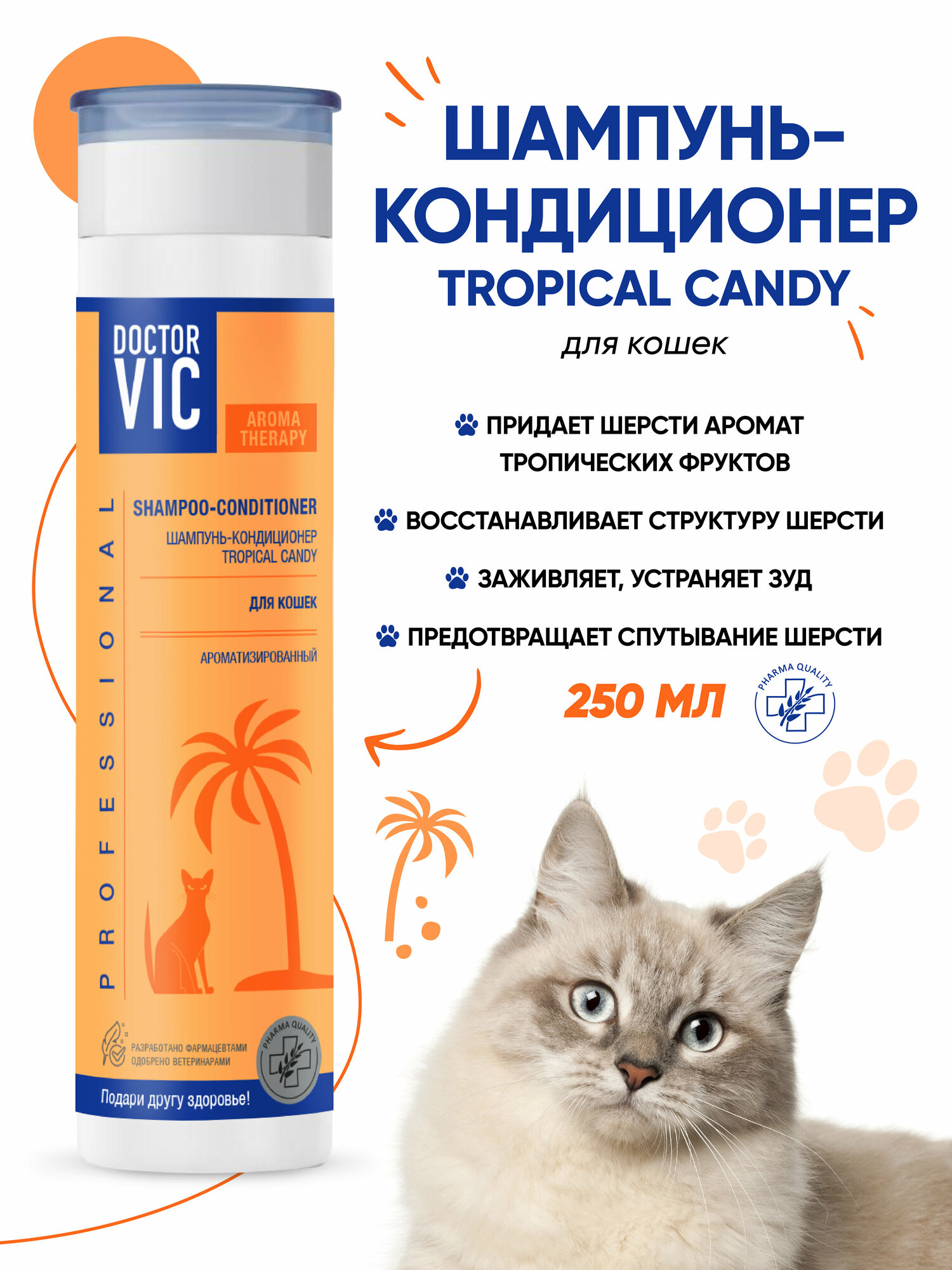 Шампунь-кондиционер для кошек Doctor VIC Tropical Candy для всех пород 250мл