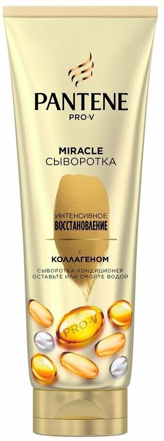Питательная сыворотка-кондиционер 4 в 1 Miracle Густые и Крепкие от PANTENE Pro-V для глубокого восстановления тонких, слабых волос. Откройте для себя наш комплекс Pro-V, обогащенный укрепляющими липидами, защитными антиоксидантами и гиалуроновой кислотой. Кондиционирующая сыворотка для волос с тающей текстурой проникает глубоко в структуру волос и дарит им в 3 раза больше силы изнутри* (*для защиты от повреждений при укладке). Формула интенсивного ухода помогает устранить видимые повреждения** за 1 применение и придает волосам блеск и здоровый вид (**разглаживает поверхностные повреждения). Продукт протестирован специалистами Швейцарского Института Витаминов. СПОСОБ ПРИМЕНЕНИЯ: Сыворотку-кондиционер Pantene Pro-V Miracle можно использовать в 4-х форматах: 1) как смываемый бальзам-ополаскиватель для ежедневного ухода 2) как маску для волос для интенсивного ухода 1-2 раза в неделю 3) как несмываемую сыворотку на просушенные полотенцем волосы 4) как термозащитное средство перед укладкой.