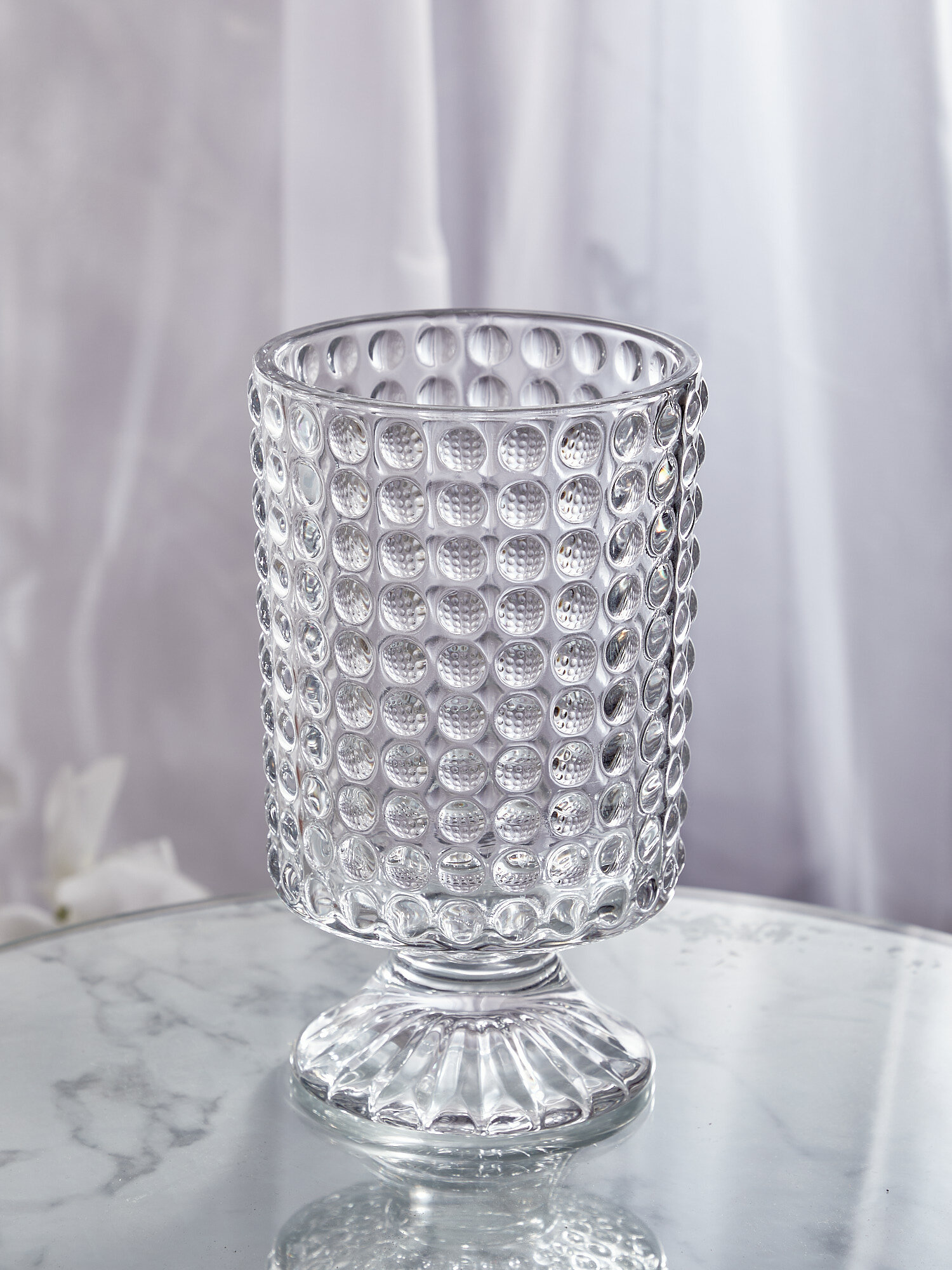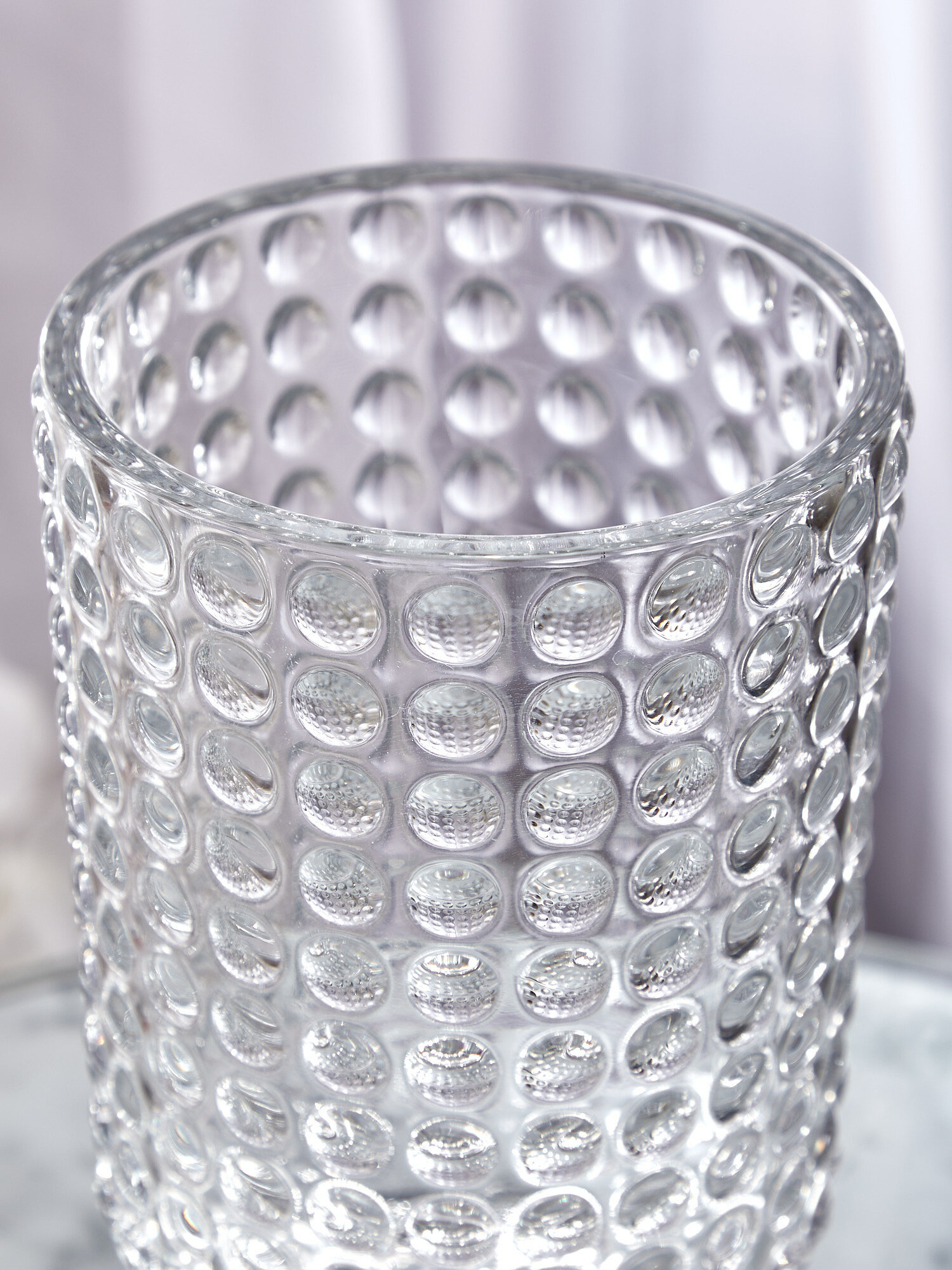 Ваза с пузырьковым рисунком и цилиндрической формой - это универсальное дополнение для любого дома. Используйте ее в качестве центрального элемента на журнальном или приставном столике, а также на консоли.