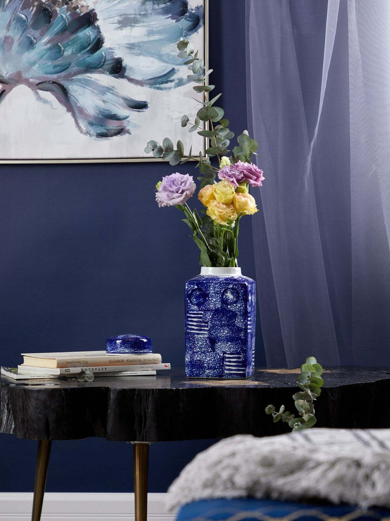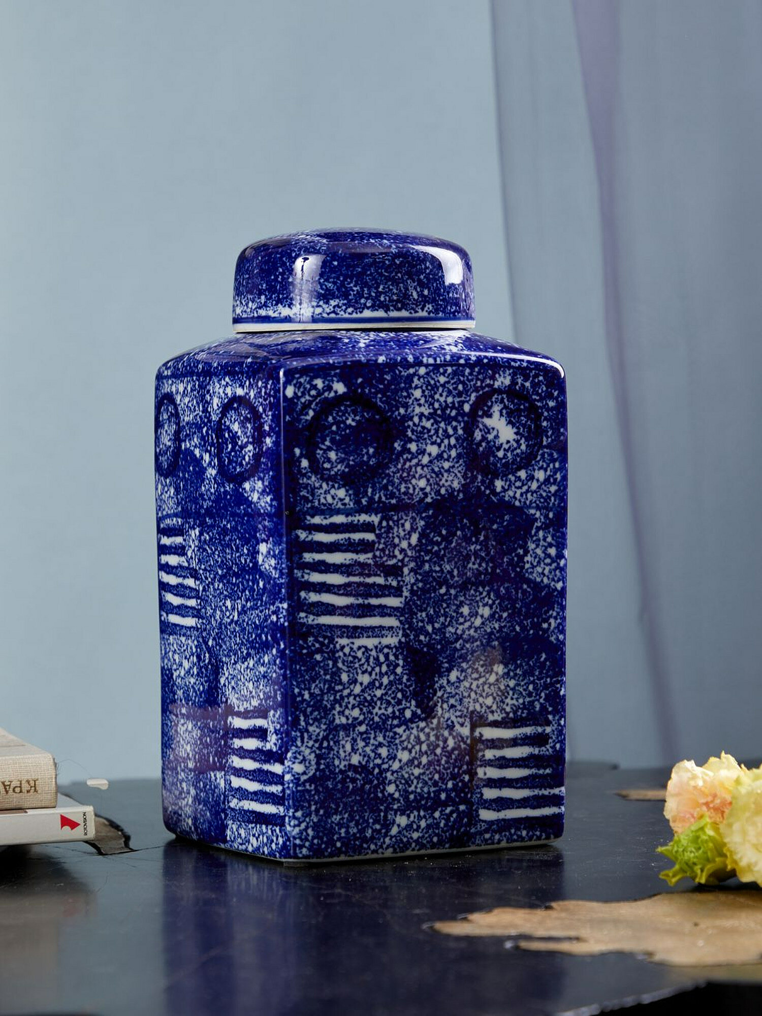 Квадратная банка с круглой крышкой украшена абстрактным узором. В сочетании с бело-синей отделкой и универсальным внешним видом он обязательно понравится как традиционным, так и современным декораторам. Это идеальный акцент, который подчеркнет вашу любимую комнату в доме.