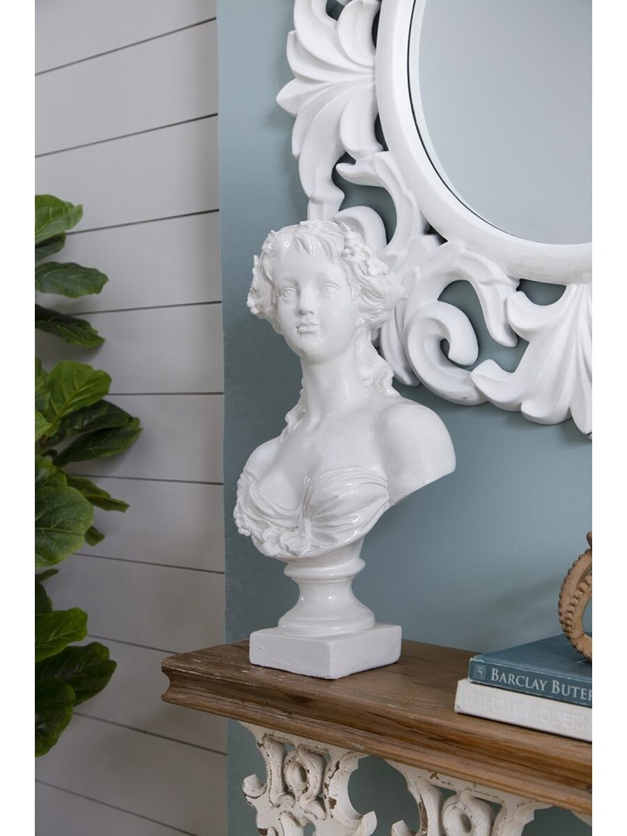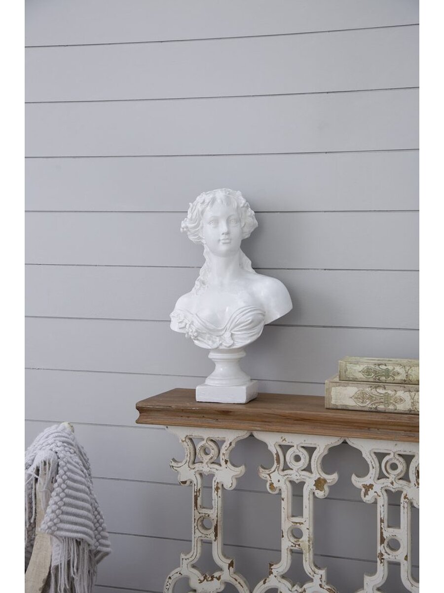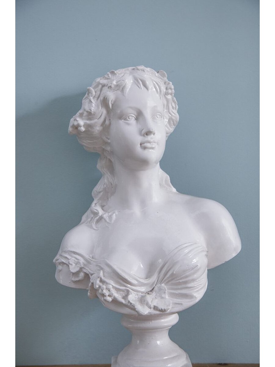 Классическая и элегантная, эта красивая статуя имеет глянцевую отделку, которая подчеркивает очарование и изящество этого бюста. Напоминающая о прошедших эпохах, эта прекрасная статуя является уникальным дополнением к шикарной гостиной, традиционной столовой или наполненной антиквариатом домашней библиотеке.