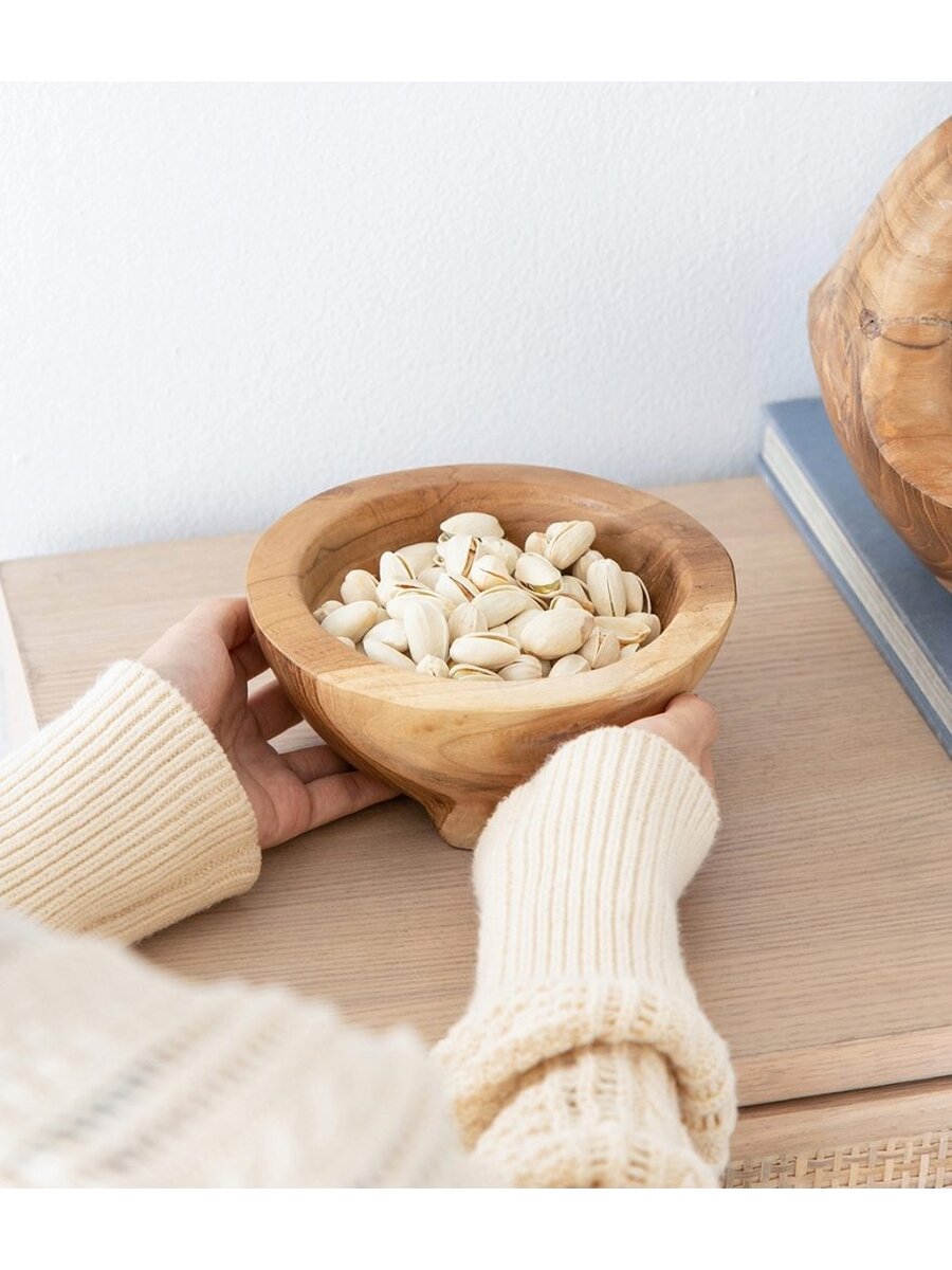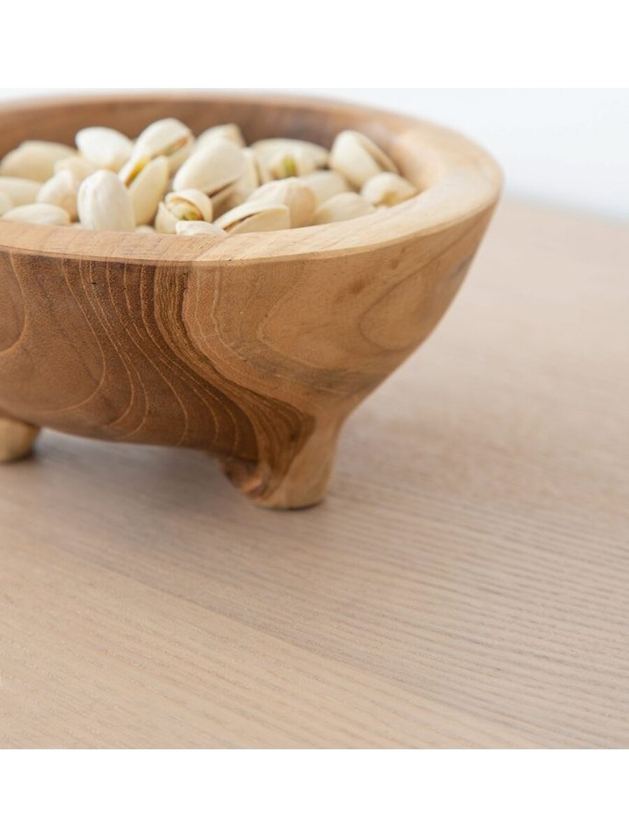 Набор из двух мисок на ножках из тикового дерева придает декору естественность и элегантность. Каждая миниатюрная миска вырезана из цельного куска настоящего тикового дерева, что подчеркивает характерную текстуру материала и теплый оттенок предмета. Используйте на столике в прихожей или на комоде в качестве декоративного элемента.