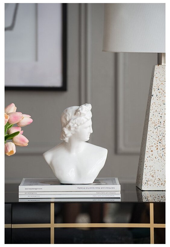 Изящный бюст, изготовленный из гладкой керамики с глянцевой белой глазурью. Идеально подходит для минималистичных, современных и классических интерьеров.
