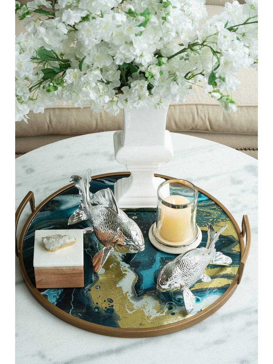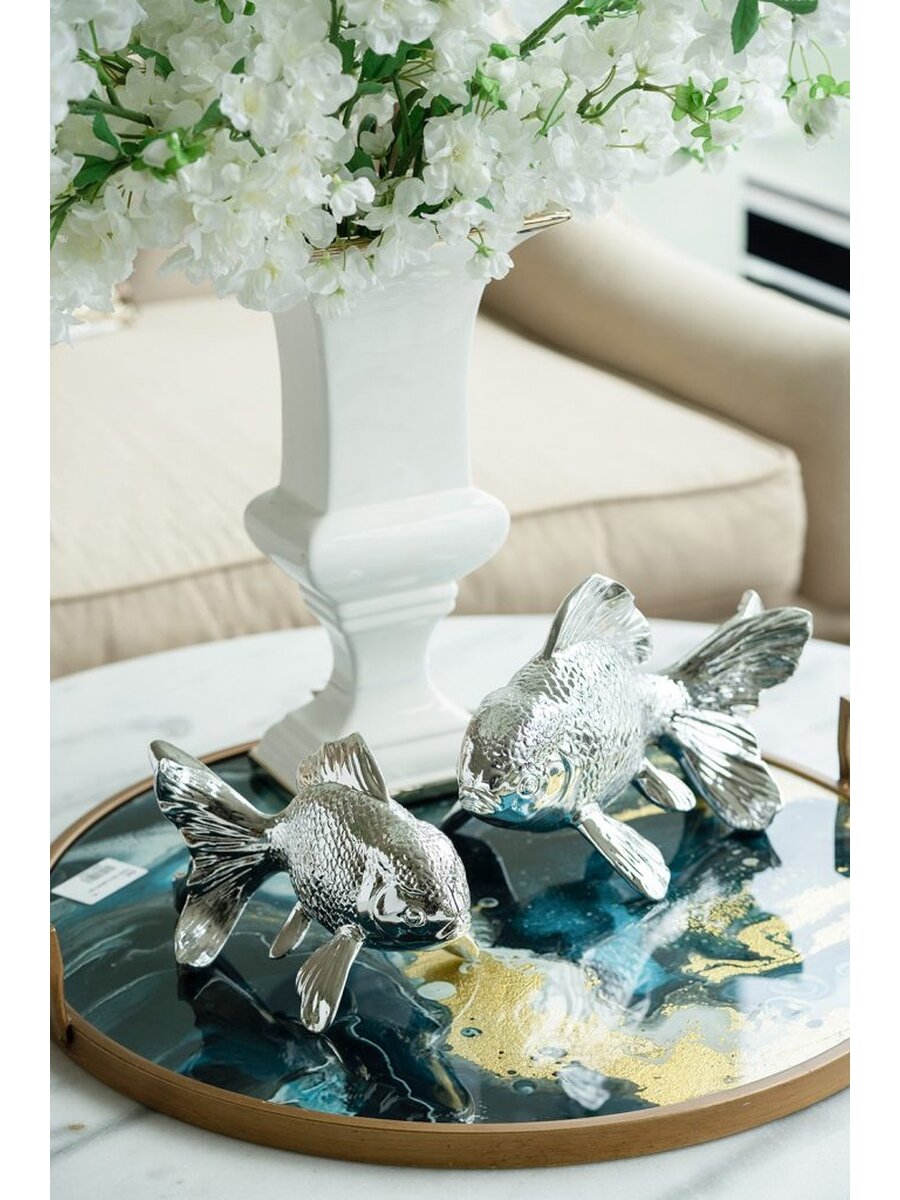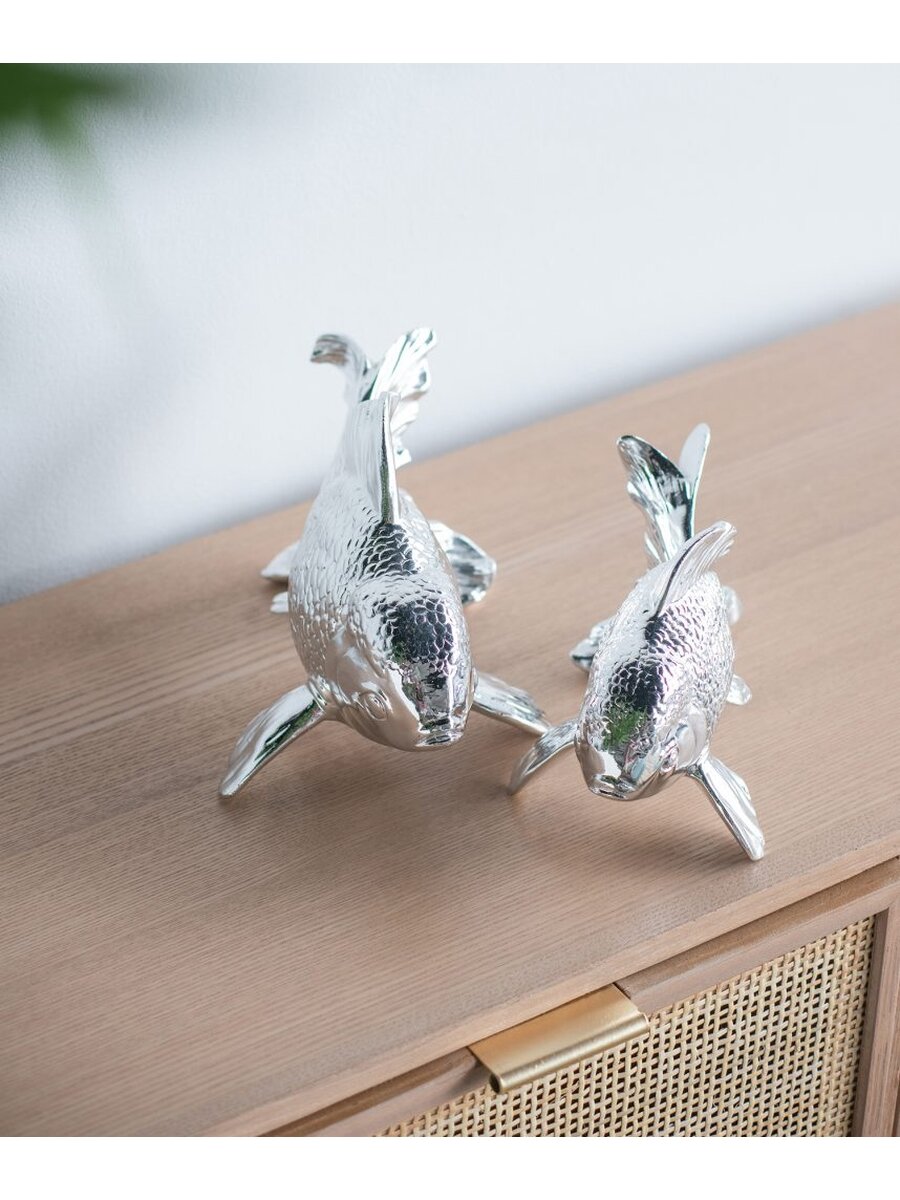 Позвольте глянцевому блеску статуэтки привнести атмосферу океана в ваше пространство. Фигурка с блестящей хромированной отделкой создает эффектное впечатление в ванной комнате, просторной кухне или гостиной. Конструкция из смолы обеспечивает изделию долговечность, а хромированная отделка - изысканный внешний вид.