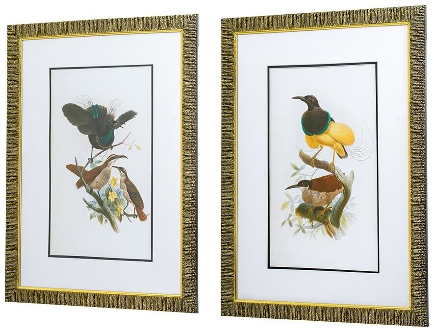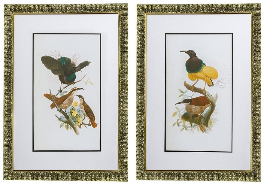 Создайте картинную галерею с помощью этого набора из 2-х настенных панно. На каждом кадре изображены истории из жизни птиц. Золотые оправы подчеркнут классический стиль, а принты придадут вашим стенам современный вид.