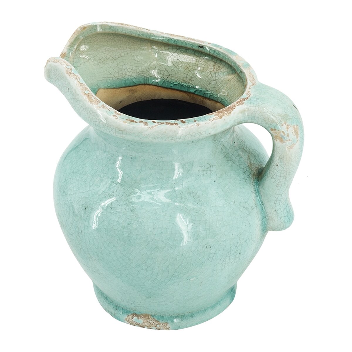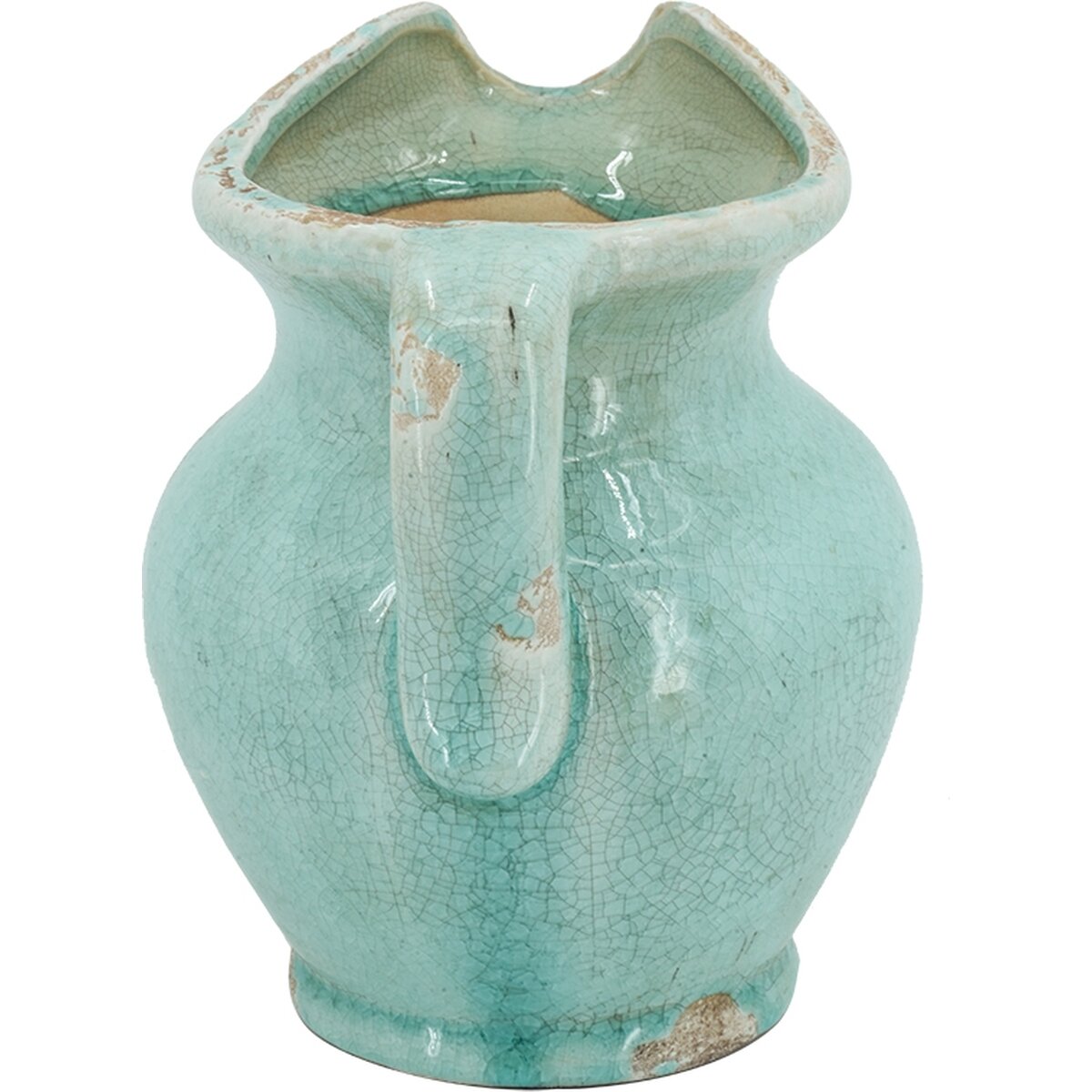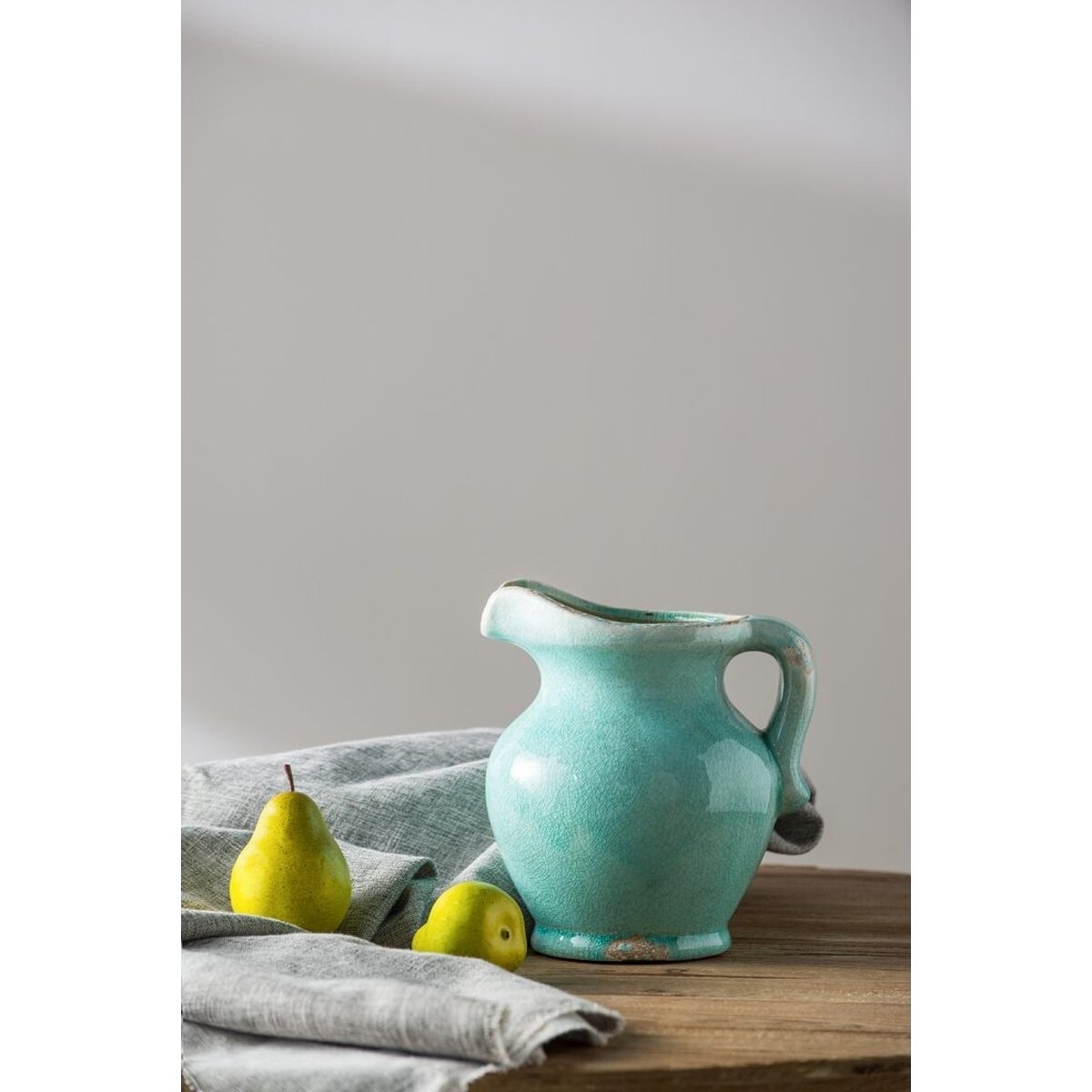 Изящный керамический кувшин из терракота цвета голубой лазури с патиной. От него веет теплом и очарованием старины и грации. Любой напиток в этом кувшине приобретает волшебный вкус теплого бриза и пряные ноты прованских трав.