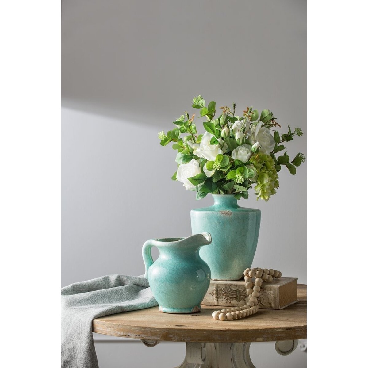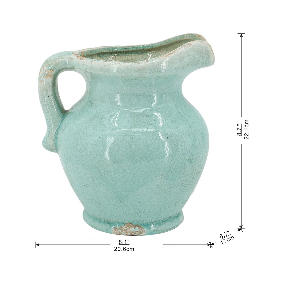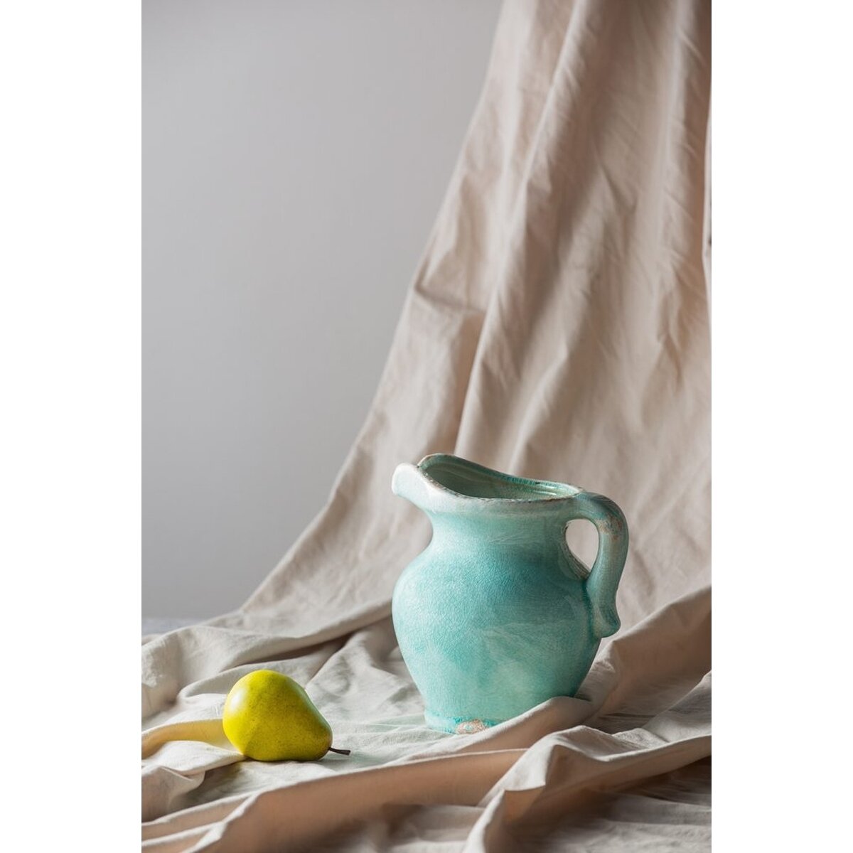 Изящный керамический кувшин из терракота цвета голубой лазури с патиной. От него веет теплом и очарованием старины и грации. Любой напиток в этом кувшине приобретает волшебный вкус теплого бриза и пряные ноты прованских трав.
