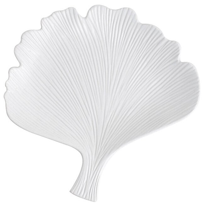 Керамическая тарелка в форме листа гинкго придаст атмосферу естественности вашему интерьеру. Украсьте ей полку или стол, и тем самым дополните свою комнату новой удивительной деталью. Универсальная белая полированная отделка отлично сочетается с любой поверхностью.