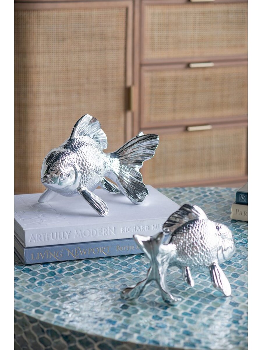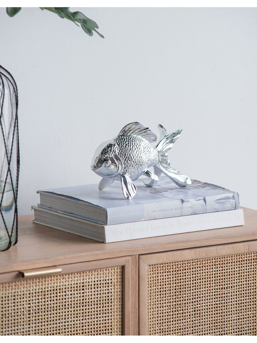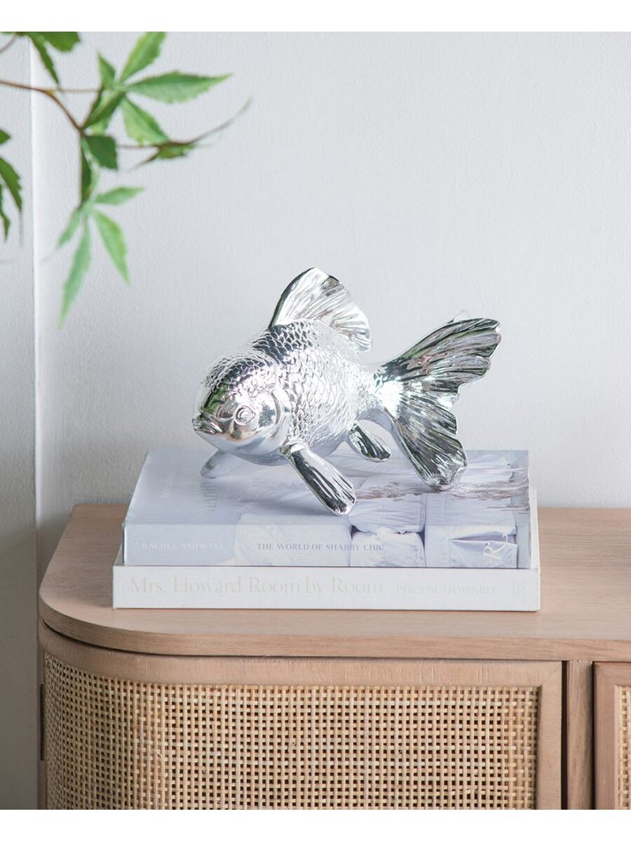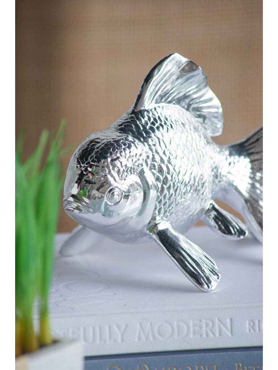 Позвольте глянцевому блеску статуэтки привнести атмосферу океана в ваше пространство. Фигурка с блестящей хромированной отделкой создает эффектное впечатление в ванной комнате, просторной кухне или гостиной. Конструкция из смолы обеспечивает изделию долговечность, а хромированная отделка - изысканный внешний вид.