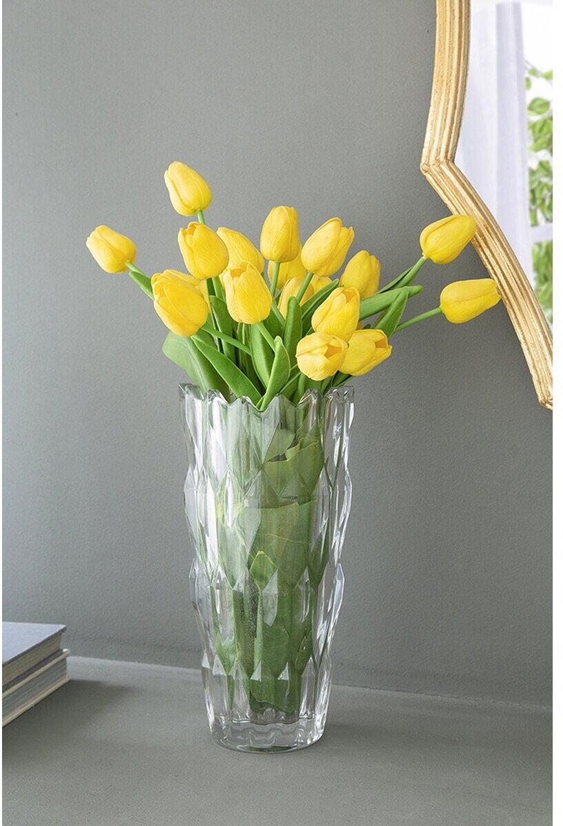 Толстое, граненое стекло вазы улавливает и рассеивает свет. Великолепно смотрится на любой поверхности - от полки до стола. Используйте ее с любой цветочной композицией или как отдельный элемент интерьера.