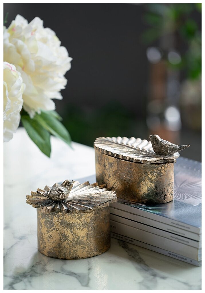 Шкатулка овальной формы, украшенная нежной птицей на листе, добавит элегантности любому пространству. Храните ювелирные украшения, аксессуары или канцелярские товары в этой роскошной шкатулке. Идеально подходит для гламурной спальни, офиса или изысканной гостиной.