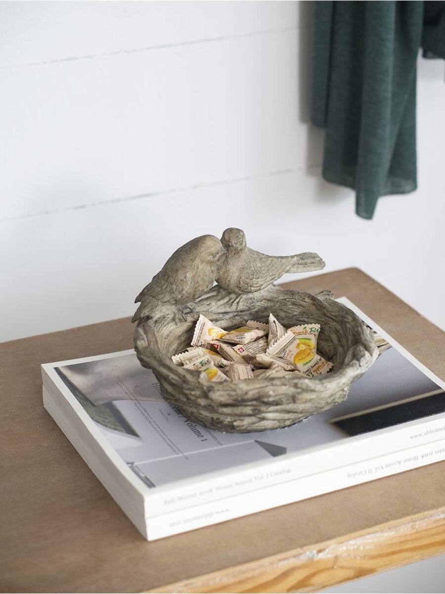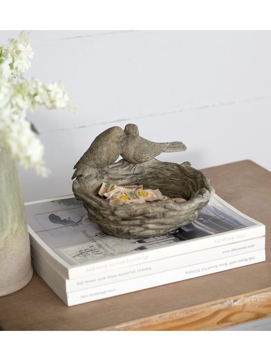 Это блюдо из гнездящихся птиц придает индивидуальность своей детальной конструкцией. Этот предмет станет прекрасным дополнением к небольшому столу или комоду, чтобы складывать туда карманные предметы при входе в дом. Такая чаша - подарок на новоселье с милой символикой. Данное блюдо будет таким же функциональным, как и красивым.