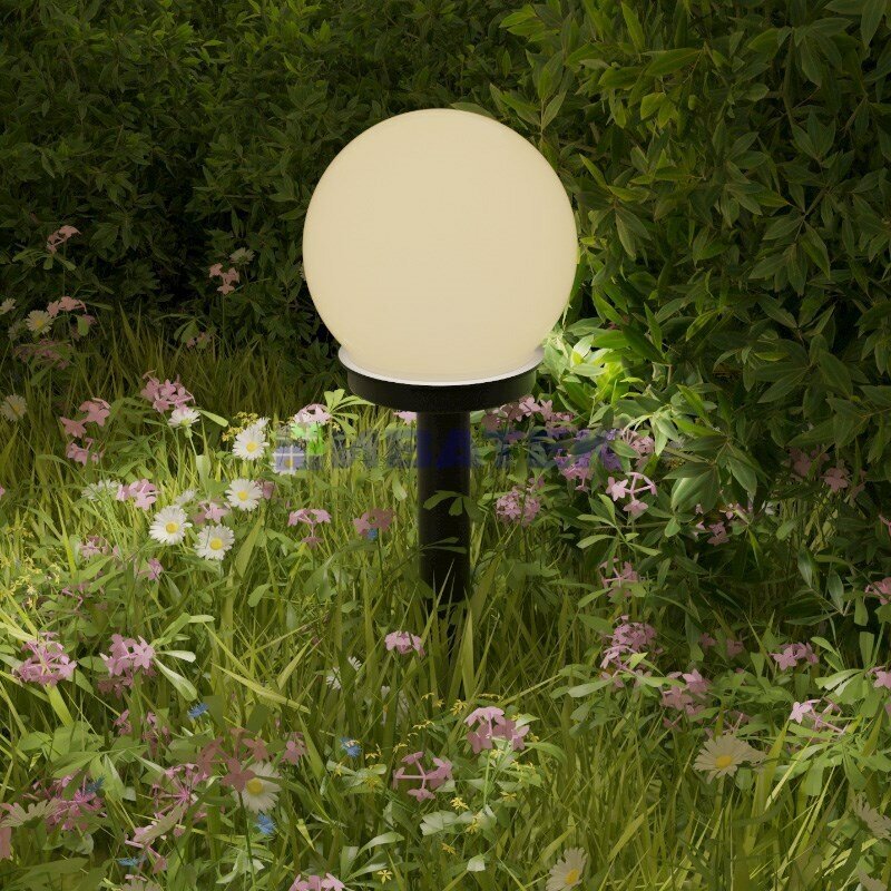 Светодиодный садовый светильник SLR-GL-100 на солнечной батарее высотой 34 см (с колышком) идеально подходит для подсветки газонов, цветников и дорожек.
