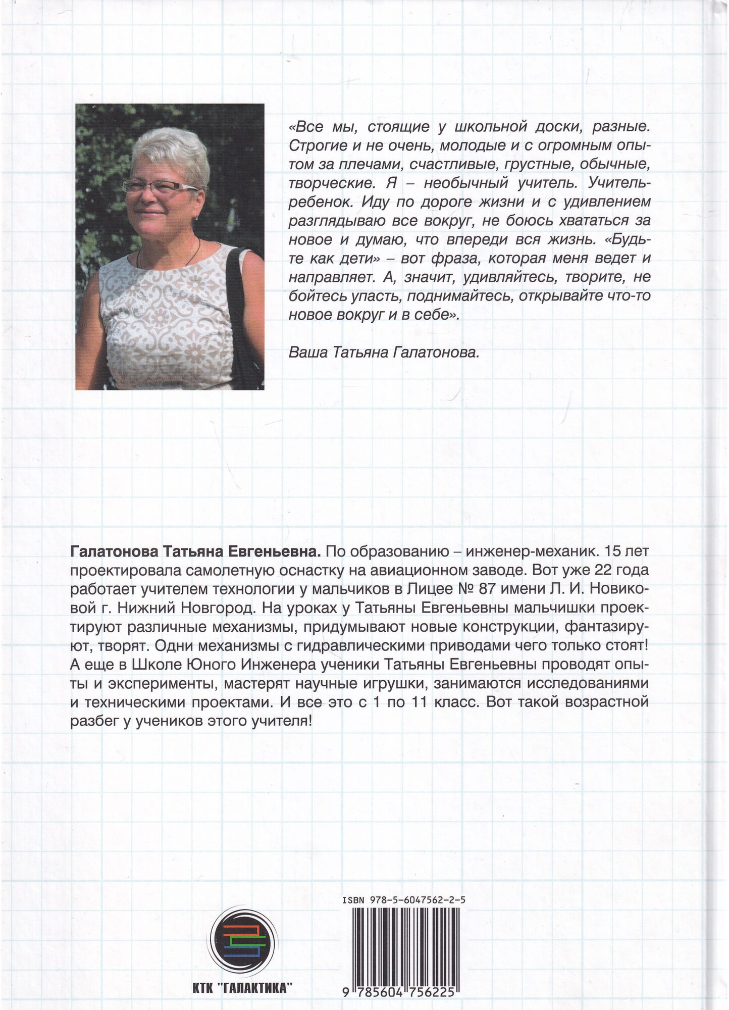 У вас в руках вторая книга Галатоновой Татьяны, учителя технологии из Нижнего Новгорода. Первая книга этой серии называется "Стань инженером". Обе эти книги помогут вам познавать мир через простые инженерные поделки (мастерилки).