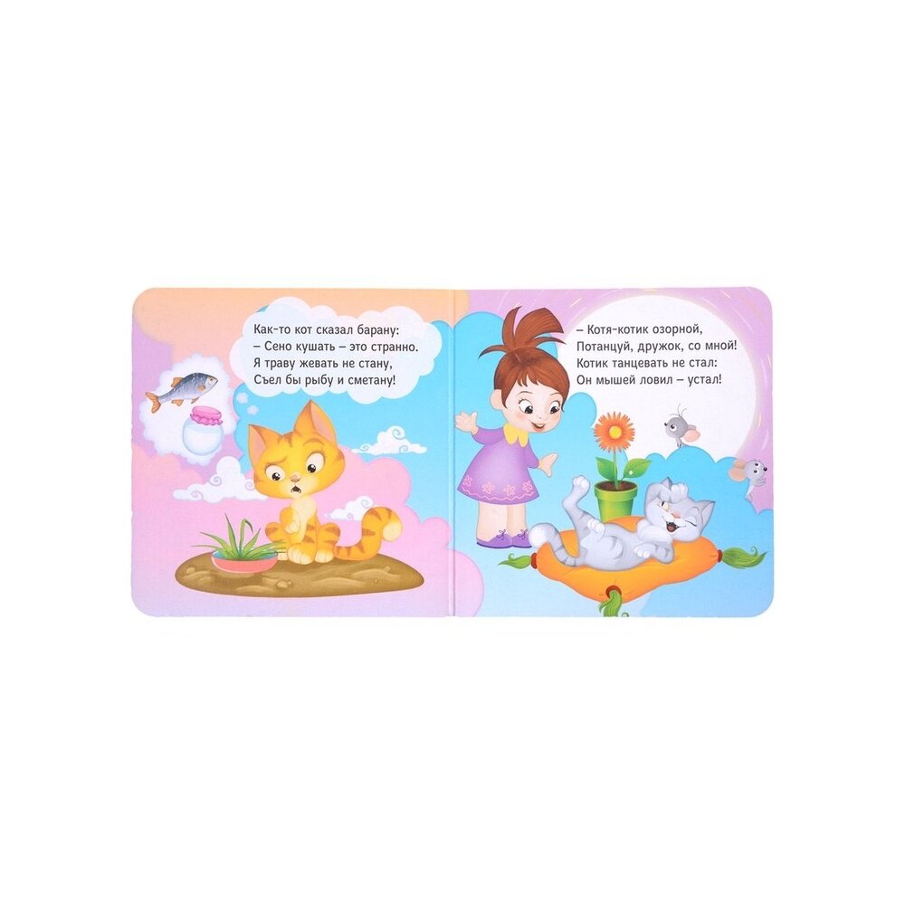 Книжки в интересной упаковке, на подарок будет очень кстати. В комплекте 6 штук. Не большие, как раз для маленьких ручек малышей. Плотный картон, яркие картинки и хорошо читаемый текст. В книжке 7 страниц(12 разворотов). Ребенку интересно разглядывать изображения, и так же будет легко читать, когда научится. И самое классное, что книги не повредятся при падении или при попытке попробовать их на вкус)
