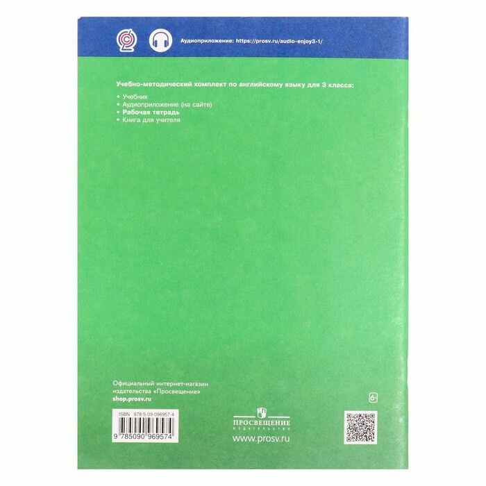 На сегодняшний день товар «Книга: Enjoy English Workbook Tests Английский язык 3 класс Рабочая тетрадь с контрольными работами (Наталия Николаевна Трубанева, Мерем Забатовна Биболетова, Ольга Анатольевна Денисенко); Просвещение, 2022» можно купить с кешбеком в 3 магазинах: book24, Буквоед, Читай-город