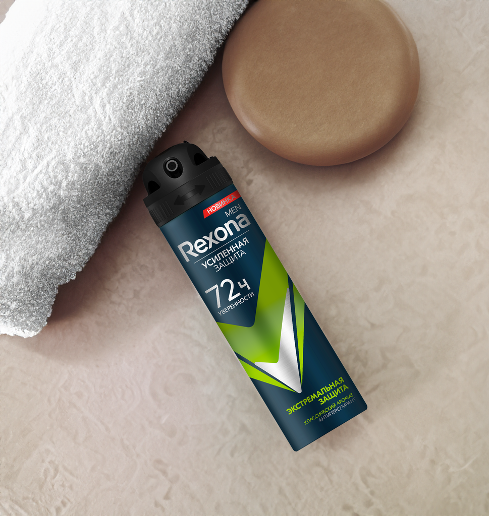 Аэрозоль Экстремальная защита Rexona Men разработан специально для мужчин на основе усиленной формулы для непревзойденной защиты от пота и запаха на 72 часа*! Новая революционная технология Motionsense активируется при движении, сохраняя свежесть и абсолютный комфорт на весь день. Микрочастицы создают дышащую микропленку для надежной защиты от пота и запаха. Потовые железы блокируются частично, кожа при этом дышит. Формула антиперспиранта создана экспертами Rexona с учетом того, чтобы уменьшить следы на одежде, в том числе черной и белой, которые зачастую остаются от обычных дезодорантов! Новый классический элегантный древесный аромат Rexona Men с теплыми нотами бергамота, сандала и кедра станет отличным дополнением образа в течение дня.В линейке серии также представлены шариковый антиперспирант и антиперспирант-карандаш, чтобы вы могли выбрать идеальный для себя формат. Добавьте Rexona Men в свой ежедневный ритуал свежести. Используйте антиперспирант сразу после приема душа, ощущайте свежесть весь день и будьте уверены.