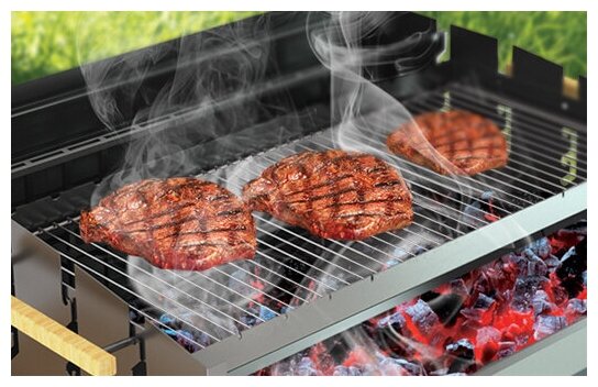 | Комплектация | гриль - 1 шт; рамка для шампуров - 1 шт; решетка-гриль из нержавеющей стали - 1 шт; подвесная полка - 1 шт; генератор угля - 1 шт; ножки - 4 шт |