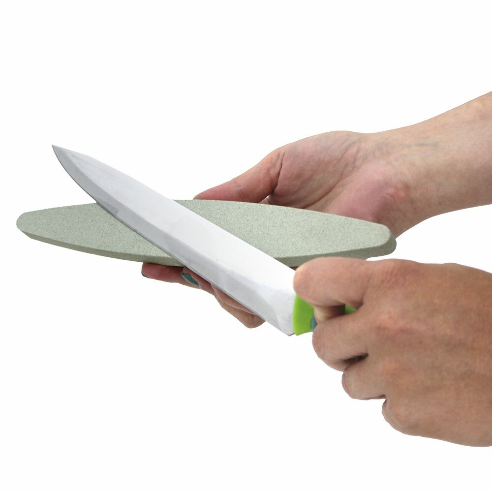 Перед применением камень необходимо смочить, нож расположить поперек бруска под углом 20 градуса.