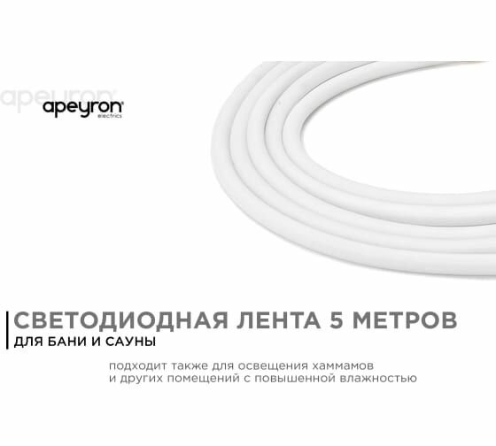 Светодиодная влагозащищенная лента Apeyron 144W/m 120LED/m 2835SMD дневной белый 5M 00-324