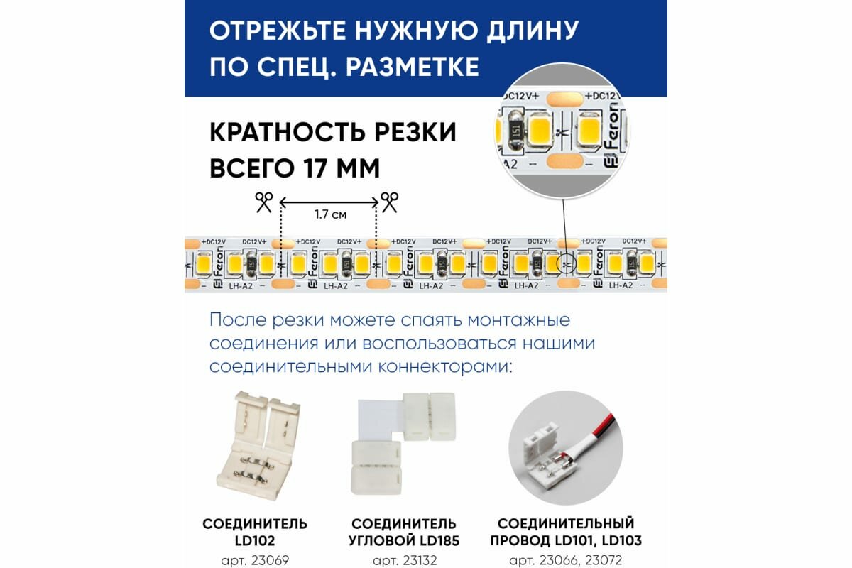 Светодиодная лента 41279 - продукт известной компании Feron (Китай). Имеет максимальную мощность 850 Вт, освещает площадь до 170 кв. м.