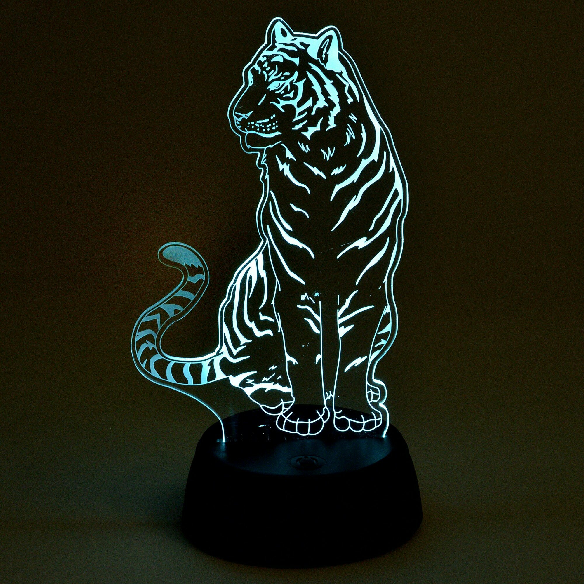 Световая фигура светодиодная с выключателем ULI-M507 RGB/3AA TIGER/BLACK - продукт известной компании Uniel (Китай). Имеет максимальную мощность 0.5 Вт, освещает площадь до 0.1 кв. м. Отлично подойдет для таких мест, как гостиная, кафе, спальня. Впишется в интерьеры следующих стилей: современный.