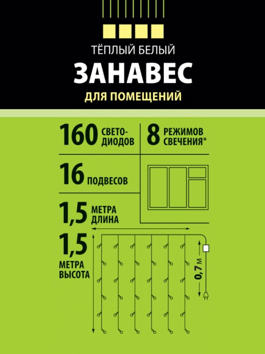 | Тип гирлянды | занавес |