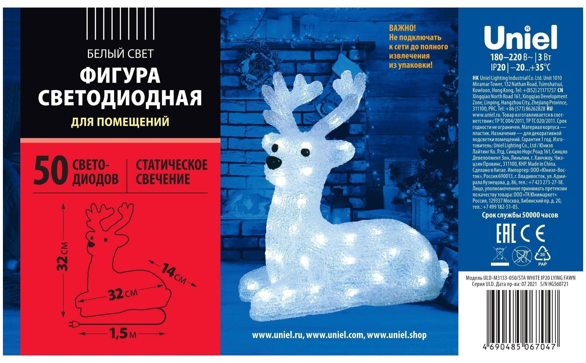 Светодиодная фигура Uniel 09560 ULD-M3133-050/STA White IP20 Lying Fawn Фигурки