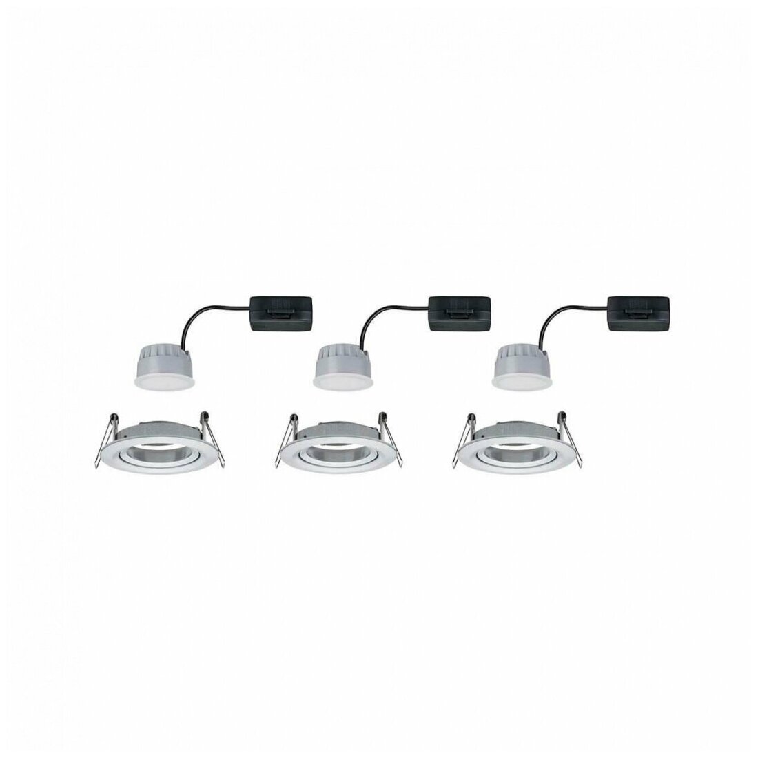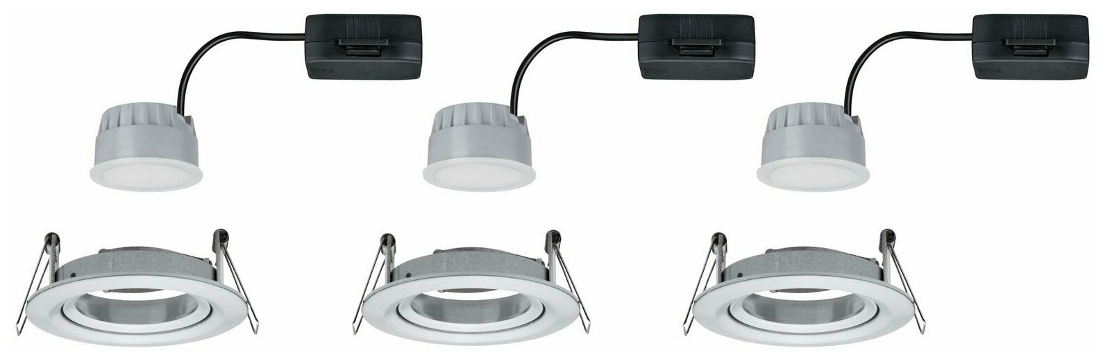 Светильник встраиваемый Paulmann Nova Coin 6Вт 470Лм 2700К IP23 LED 230В Алюминиевая спираль 3-х ступенчатое диммирование Набор 3штуки D84мм 93487.Встраиваемый светильник Nova, обеспечивает вам хороший свет, согласованный дизайн и высокую энергоэффективность. Благодаря прямому подключению 230 В вы можете легко соединить светильники вместе без ограничений. Благодаря простой фиксации с помощью удерживающих пружин потолок комнаты остается неповрежденным даже после многократной установки и снятия.- Набор из 3 светильников, включая источники света (сменный) Coin. Диаметр светильника 84мм (вредное отверстие 68мм).- Цветовая температура светодиодного модуля: 2700K - теплый белый.- Водозащита: IP23 защита от распыленной воды.- Для прямого подключения 230 В.- Встроенная 3-ступенчатая функция затемнения предлагает три уровня затемнения при многократном нажатии обычного настенного переключателя .