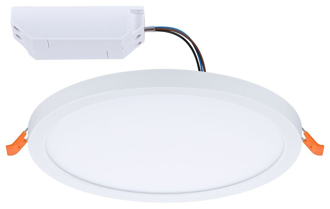 Панель светодиодная встраиваемая Paulmann Areo круглая диаметром 175 мм мощностью 13Вт 1200Лм 2000-4000K IP44 LED 230В белого матового цвета из пластика 3х ступ. диммирование 92989.Цвет света круглой встраиваемой панели WarmDim Areo белого матового цвета диаметром 175 мм можно регулировать. Нажатие переключателя света приводит к переключению трех цветовых температур от 2000 Кельвинов (золотой свет) до 4000 Кельвинов (нейтральный белый свет). Настроение освещения можно изменить в соответствии с вашими желаниями. Благодаря гибкой технологии VariFit вы можете плавно регулировать зажимные пружины для установки светильника в отверстие в диапазоне от 50 до 140 мм. Это означает, что панель может быть установлена как в существующие, так и в новые просверленные отверстия, созданные с помощью стандартных сверл. - Светильник со встроенным светодиодным источником света. - Изготовлен из не требующего ухода пластика. - Для прямого подключения 230 В. - Степень защиты IP: IP44 - защита от брызг. - Функция затемнения.