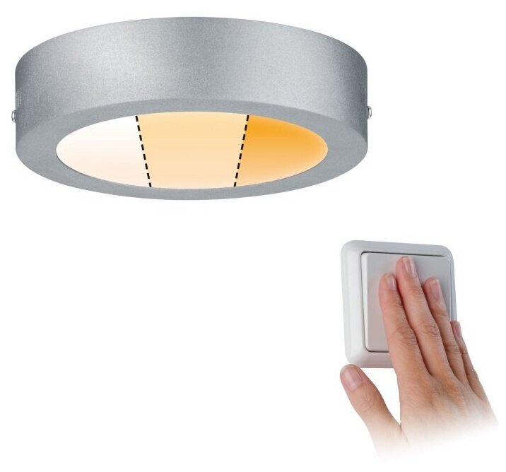 Светодиодная панель Paulmann Carpo D170мм 10.2Вт 750лм 2300-3000К IP20 230В Хром матов. Металл/Пластик Дим. 79789.Цветовая температура регулируется через настенный выключатель в три этапа.Круглая светодиодная панель Carpo мощностью 10.2Вт в цвете матовый хром сочетает в себе современные светодиодные технологии и минималистский дизайн. Благодаря своему ненавязчивому дизайну она гармонирует с любой жилой средой, а плоская высота конструкции обеспечивает равномерное распределение света. Цвет света можно затемнить в три этапа с помощью обычного переключателя света между 3000 Кельвин (теплый белый свет) и 2300 Кельвин (золотой свет). При необходимости вы меняете настроение в своем доме.- Функция затемнения света.- Со встроенной светодиодной подсветкой.- Равномерное освещение помещений на основе новейших светодиодных технологий.- Высокая световая отдача.- Рассеиватель из матового пластика.