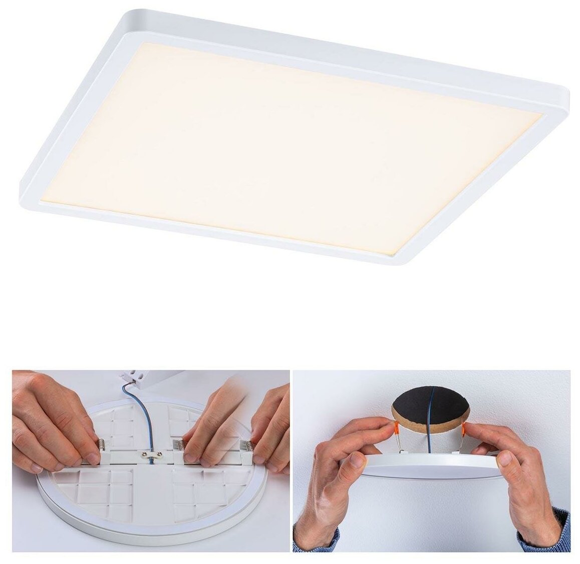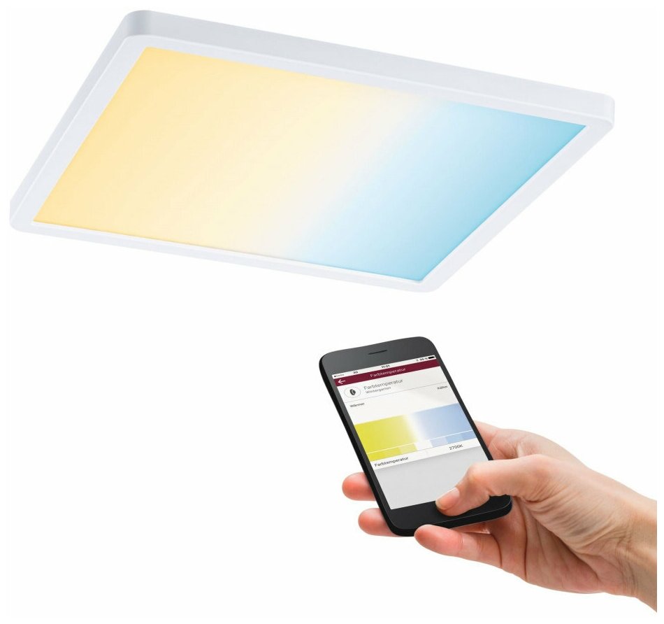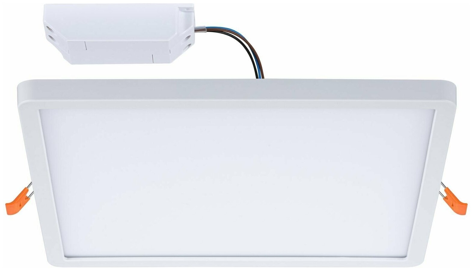 Панель встраиваемая Paulmann Areo VariFit Zigbee 230x230мм 16Вт 1400Лм 3000-6500K IP44 LED Белый настраиваемый 93048. Прямоугольная встраиваемая панель Areo размером 230x230 мм и мощностью 16 Вт белого цвета обеспечивает ровный безбликовый свет. Благодаря гибкой технологии VariFit вы можете плавно регулировать зажимные пружины для установки в диапазоне от 50 до 195 мм. Это означает, что панель может быть установлена как в существующие отверстия, так и в новые. VariFit - плавно регулируемые зажимные пружины. Со встроенным светодиодным источником света. С помощью настраиваемого белого белого света, цвет света светильника можно индивидуально и непрерывно регулировать. Управляемый с помощью пульта дистанционного управления Smart Home Zigbee (арт. 50067). Можно использовать с любым центром управления умным домом, который имеет интерфейс Zigbee 3.0. Изготовлен из легкого в уходе пластика. Для прямого подключения к сети 230 В.