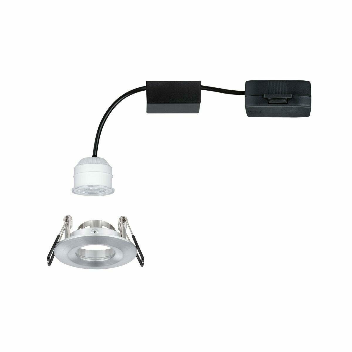 Встраиваемый светильник Paulmann Nova mini 4Вт LED модуль 310лм 2700К IP44 65мм 230В Алюминий 94304. Уменьшенный размер, новые возможности. Благодаря уменьшенному размеру не поворотный мини-встраиваемый светильник Nova цвета алюминия открывает совершенно новые возможности. Идеально подходит для зимних садов, точечного освещения, облицовки бара и балкона. Уникальный 35-миллиметровый модуль плоский и возможно их бесконечно количесто в сети. - Набор из 1 светильника, включая светодиодный модуль. - Цветовая температура: 2700К - теплый белый. - Не поворотный. - Очень плоский - установка также возможна с малой глубиной от 30 до 35 мм. - Для прямого подключения к сети 230 В.