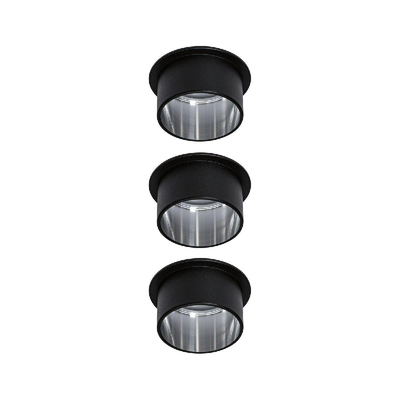 Светильник встраиваемый светодиодный Paulmann Gil 6Вт 470лм 2700К IP44 LED 230В Черный матовый / Железо тертое 3-ступенчатая регулировка яркости Комплект из 3 светильников 93383. Декоративный встраиваемый светильник Gil в двухцветном исполнении черного матового и цвета тертого железа создает настоящий акцент на освещении и расставляет акценты без бликов на потолке. Из-за выступающего декоративного цилиндра требуется меньшая монтажная глубина по сравнению с утопленными светильниками. Сменные светодиодные модули излучают приятный теплый белый свет яркость которых можно регулировать в три этапа с помощью обычного выключателя света и соединять, которые вместе можно в неограниченном количестве между собой. Для установки требуется просверлить отверстие диаметром 62 мм.- 3-ступенчатое регулирование яркости с помощью стандартного переключателя света.- Включает сменный светодиодный источник света.- Цветовая температура: 2700К - теплый белый.- Для прямого подключения 230 В.- Комплект из 3 светильников.