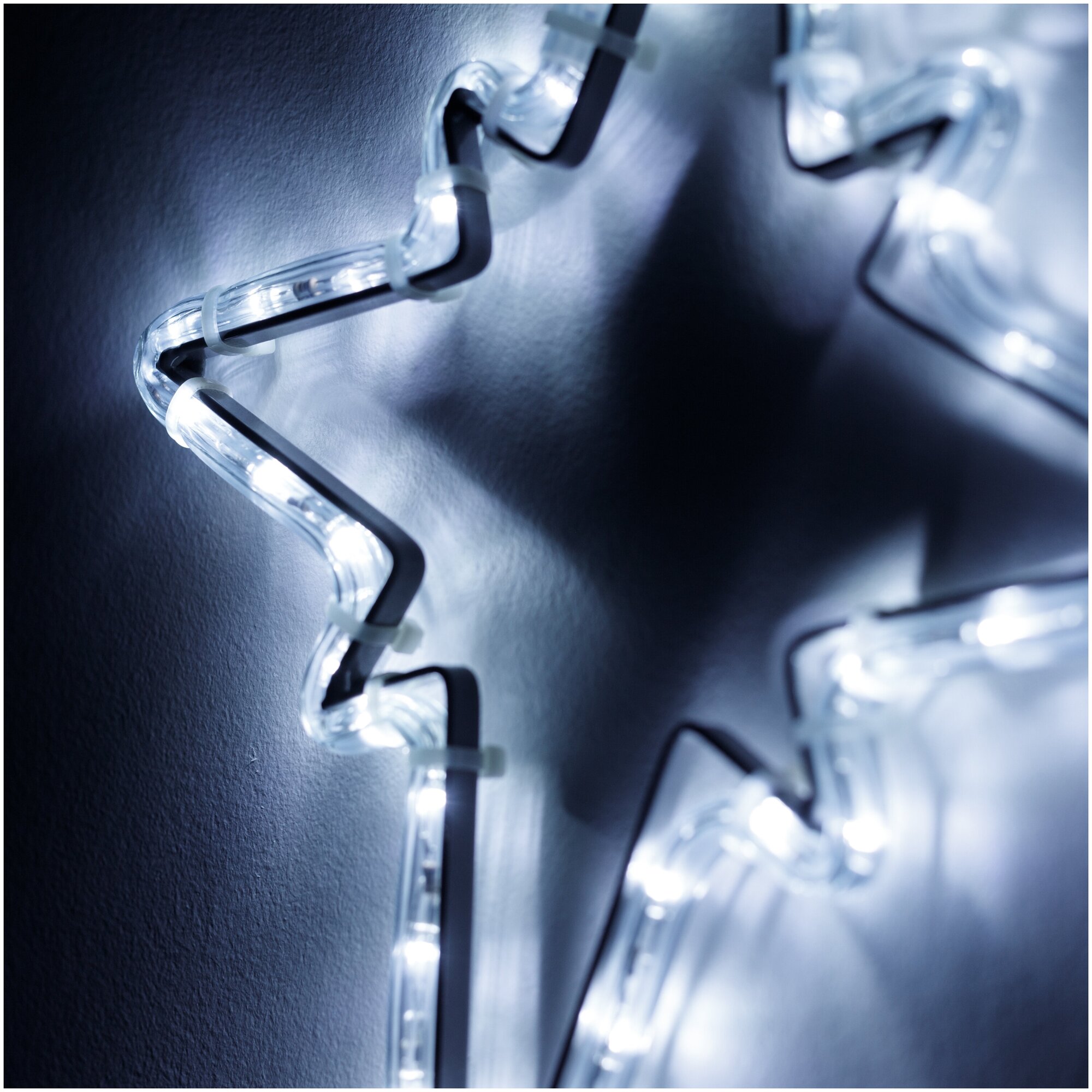 Светодиодная фигура ЗВЕЗДОЧКА. Размер 380x250 мм. Цвет светодиодов БЕЛЫЙ (6000 К), постоянное свечение. 36 светодиодов. Напряжение питания 230 В, потребляемая мощность 2.5 Вт, степень пылевлагозащиты IP65. Фигура укомплектована проводом питания для подключения к сети 230 В (без вилки питания).