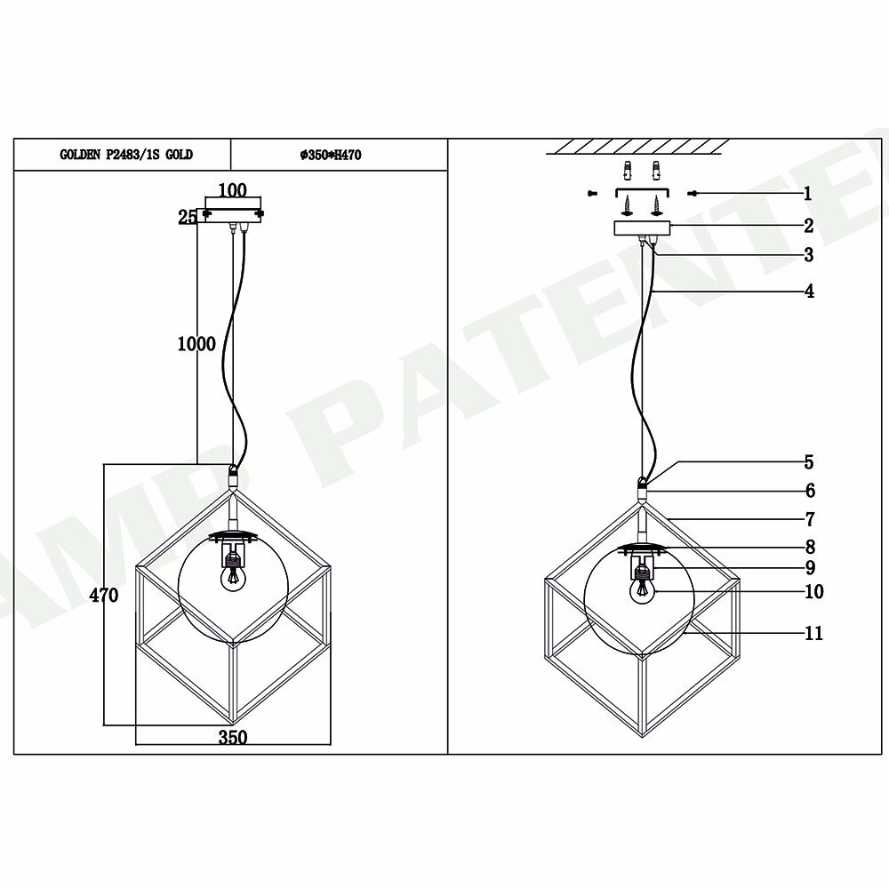 Подвесной светильник iLamp Golden P2483-1S GOLD P2483-1S GD Golden
