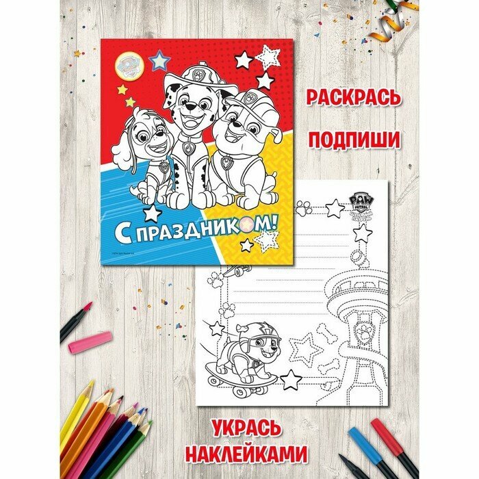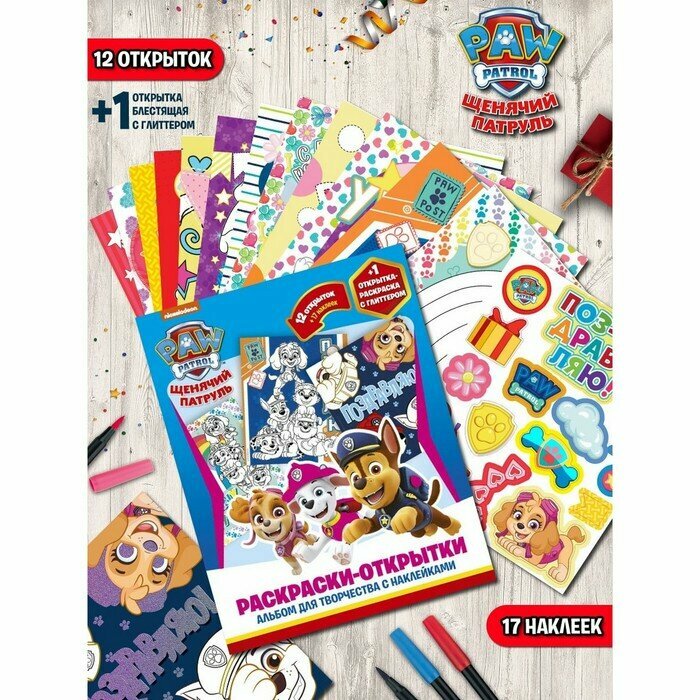 Набор для творчества с наклейками "Щенячий патруль" поможет ребенку изготовить подарок своими руками и увлекательно провести время!