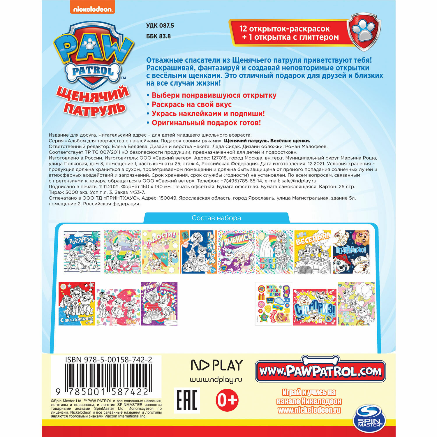| Цвет производителя | Щенячий патруль, Веселые щенки |