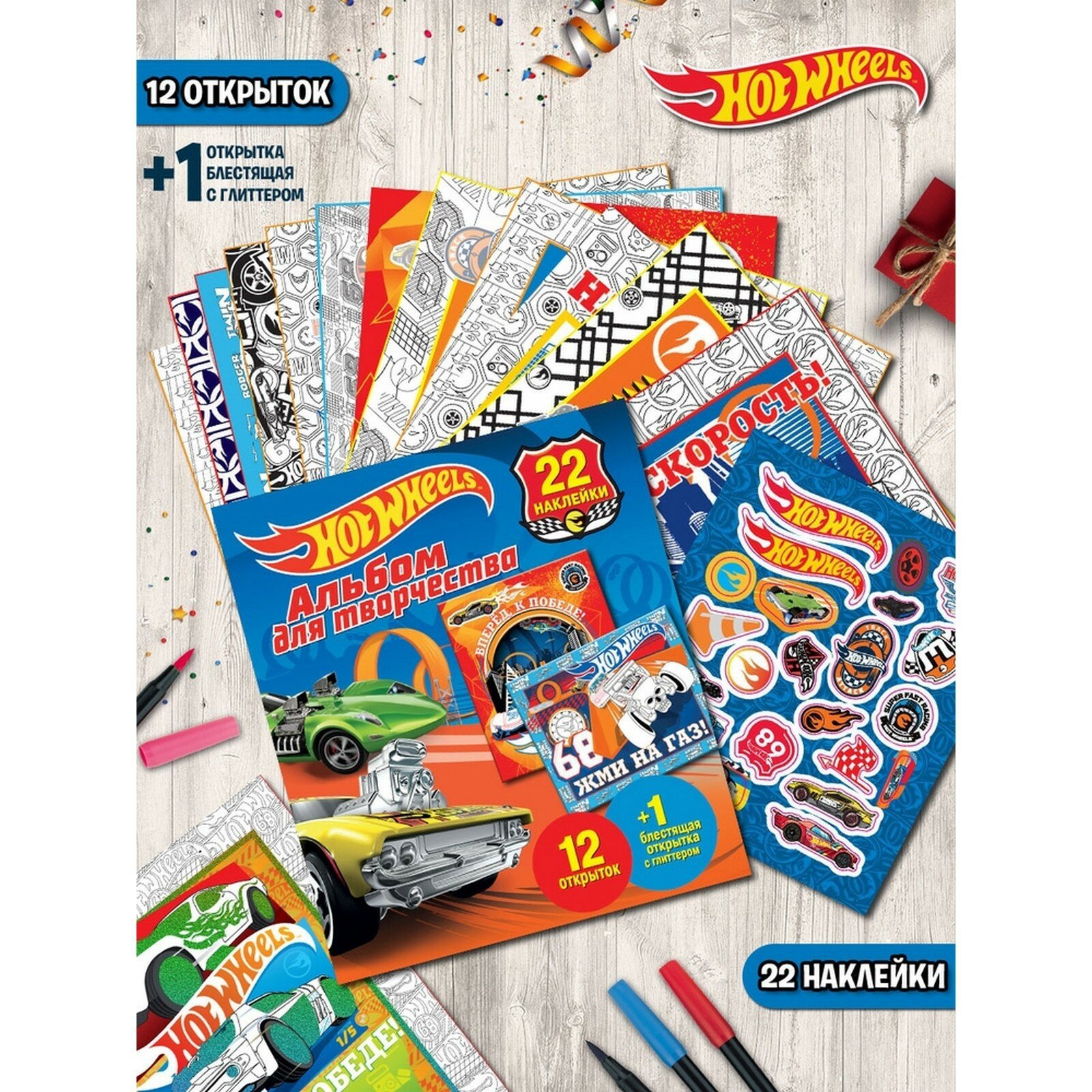 Набор для творчества с наклейками "Hot Wheels" поможет ребенку изготовить подарок своими руками и увлекательно провести время!