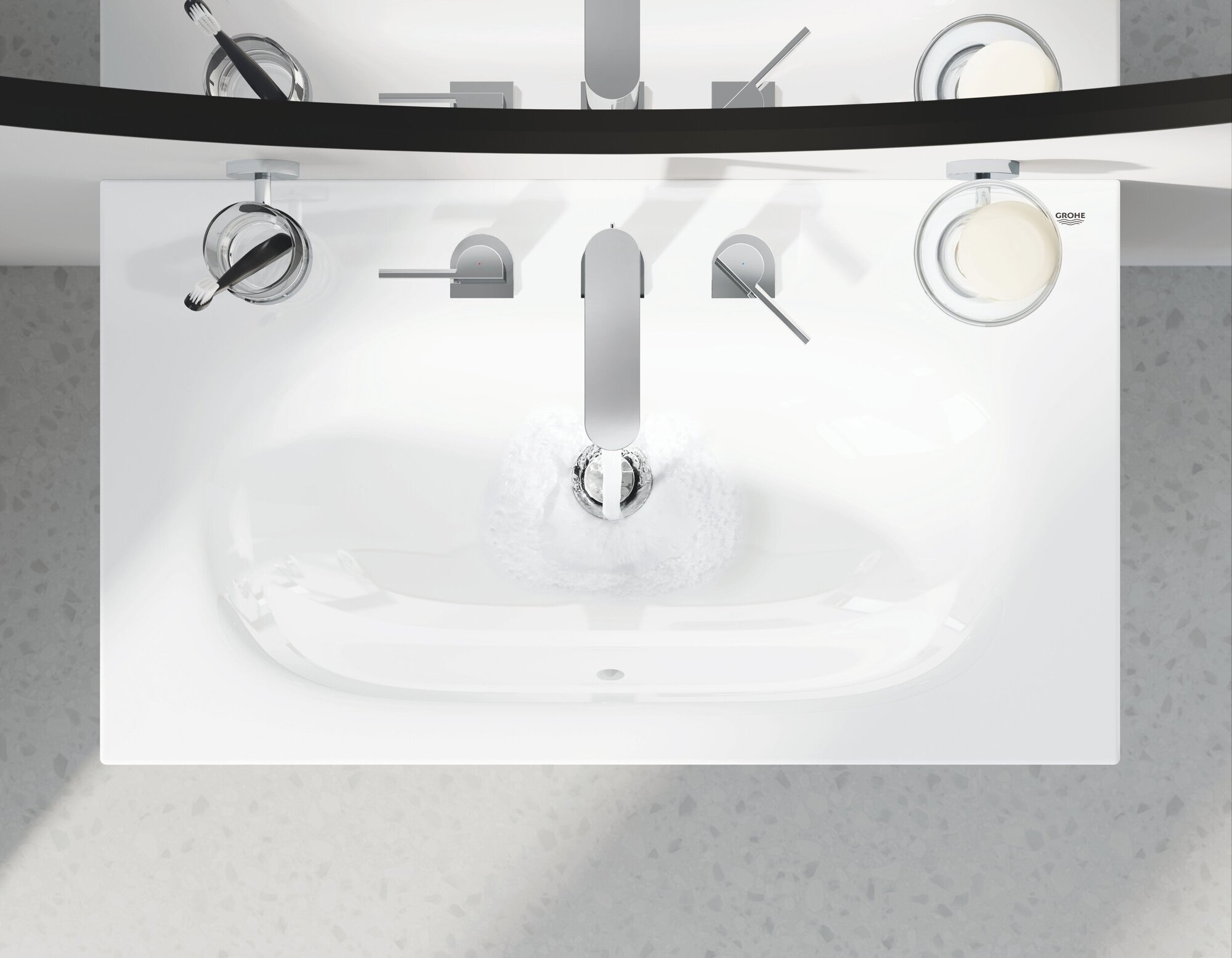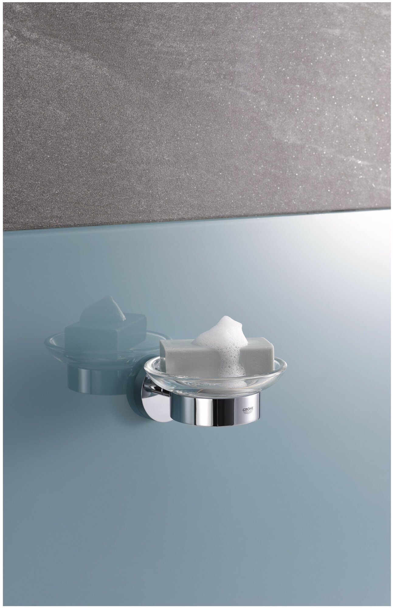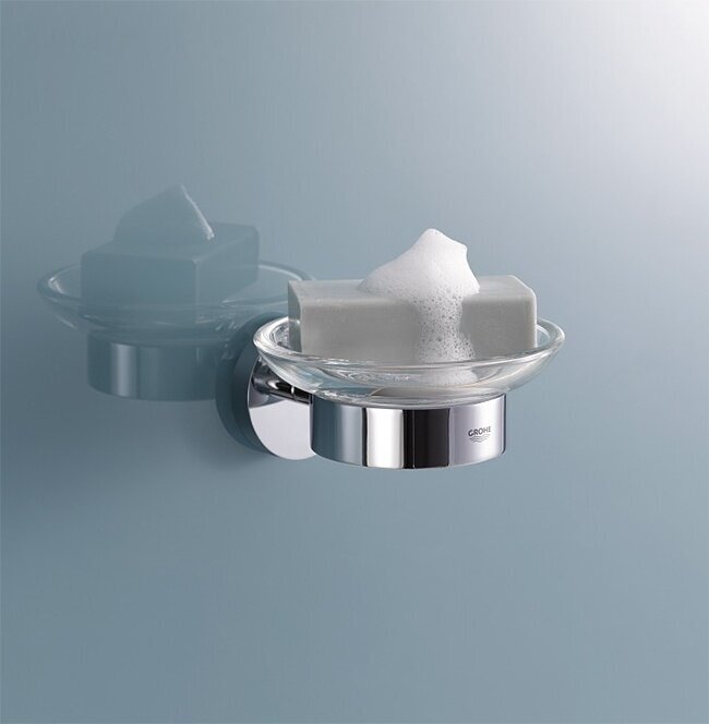 GROHE – стильная мыльница из коллекции Essentials от популярного немецкого бренда. Выполнена из стекла и металла. Устанавливается на стену и поставляется с комплектными креплениями. За счёт премиального дизайна отлично вписывается как в современный, так и классический интерьер.