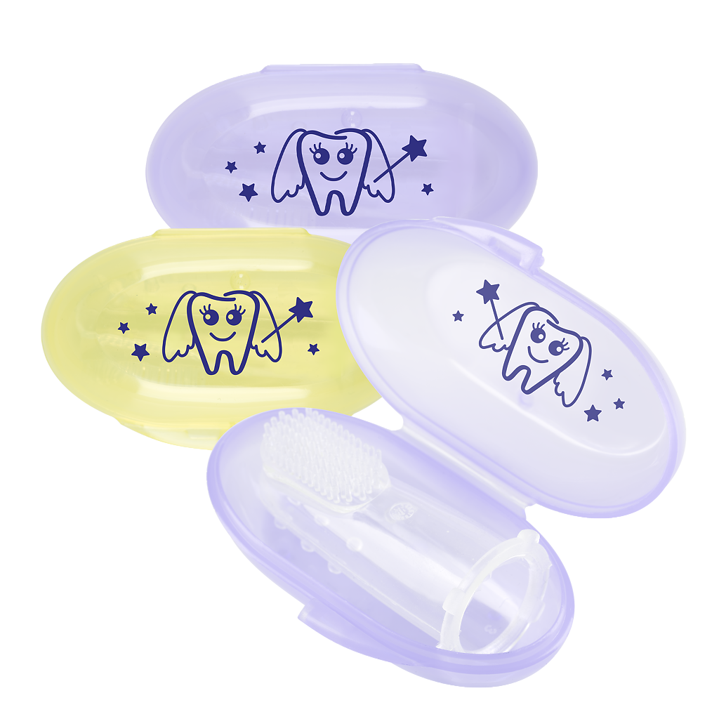 Щетка зубная на палец силиконовая, с 4 месяцев предназначена для ухода за первыми зубками малышей и деликатного массажа десен. Она изготовлена из мягкого безопасного силикона и надевается на палец взрослого человека. Чистить зубы такой щеткой рекомендуется без использования зубной пасты. В комплект с изделием входит футляр для хранения.