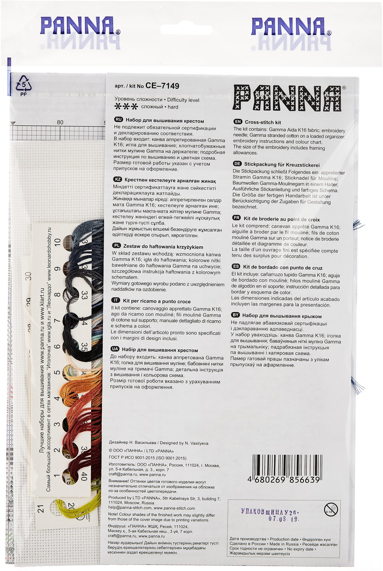 В набор для вышивания PANNA входит: аппретированная канва Gamma, хлопчатобумажные нитки мулине "Gamma", игла для вышивания "Gamma", схема и подробная инструкция по вышиванию.
