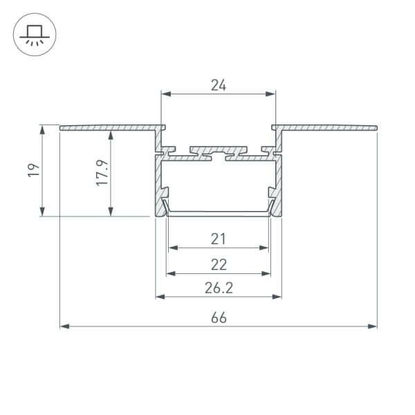 Встраиваемый профиль со скрытым фланцем под строительную отделку из алюминия для установки в гипсокартон толщиной 16 мм для основного освещения и контурной подсветки. Габаритные размеры профиля составляют 2000 мм в длину, 66 мм в ширину и 19 мм в высоту. Площадка для установки светодиодных лент позволяет использовать ленту шириной до 24 мм и мощностью до 38,6 Вт/м. Это обеспечивает гибкость в выборе светодиодных лент и создает потрясающие световые решения. Отличное решение для создания современных световых проектов.