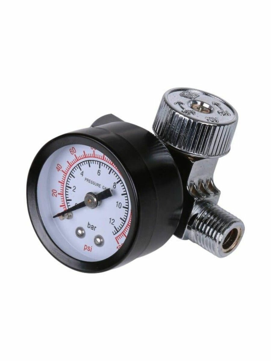 Регулятор давления с манометром ECO имеет компактное исполнение - для размещения прямо на пневмоинструменте. Регулирование давления происходит за счет изменения проходного сечения шаровым клапаном. Металлический корпус манометра - для прочности. Технические характеристики регулятора давления ECO Max пропускная способность, л/мин 1750 Max давление, атм 12 Соединение на входе 1/4M Соединение на выходе 1/4F С лубрикатором нет Защита циферблата манометра стекло