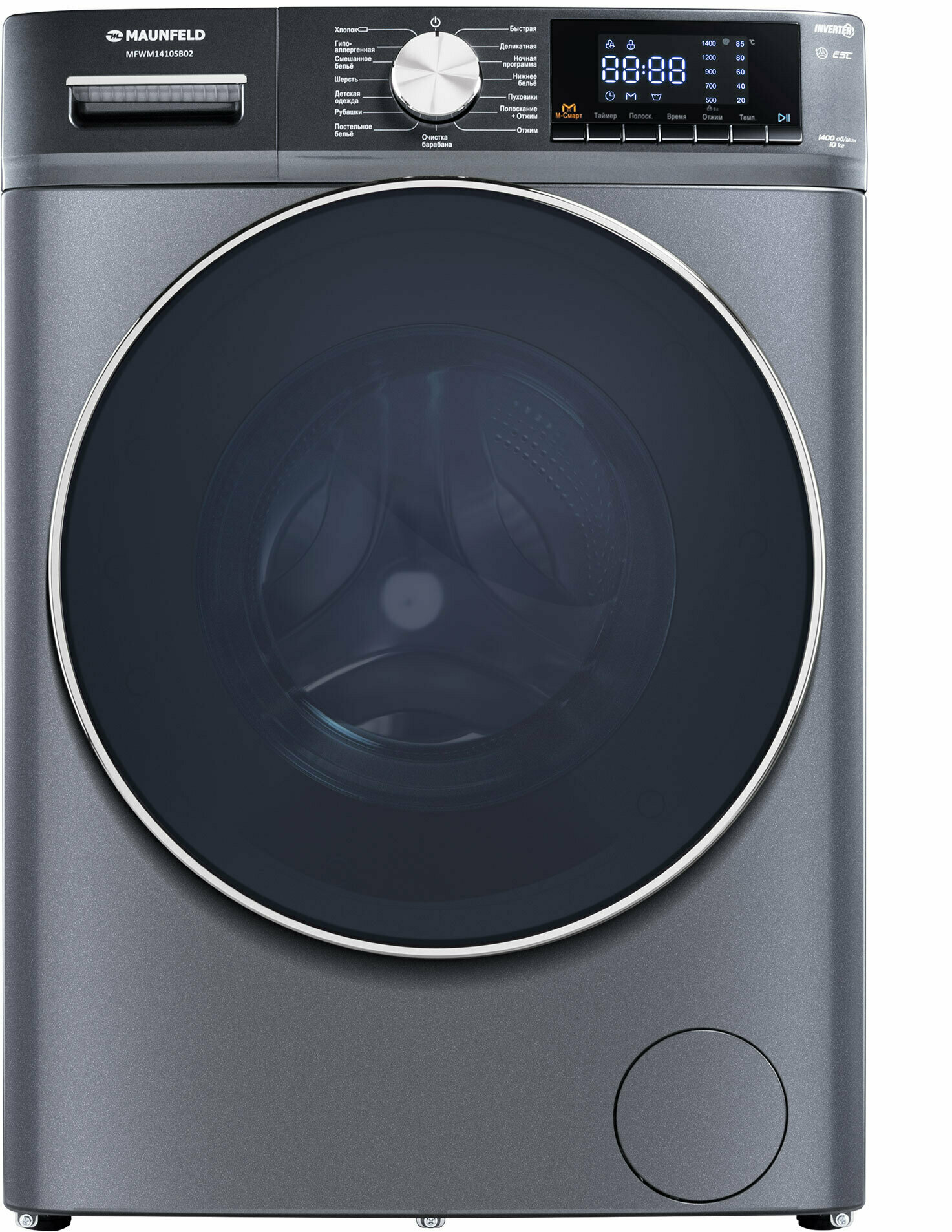 Стиральная машина MAUNFELD имеет инверторный двигатель, который обеспечивает более тихую работу и повышенную эффективность при отжиме. Максимальная скорость отжима составляет 1400 об/мин, а уровень шума при отжиме достигает 76 дБ.