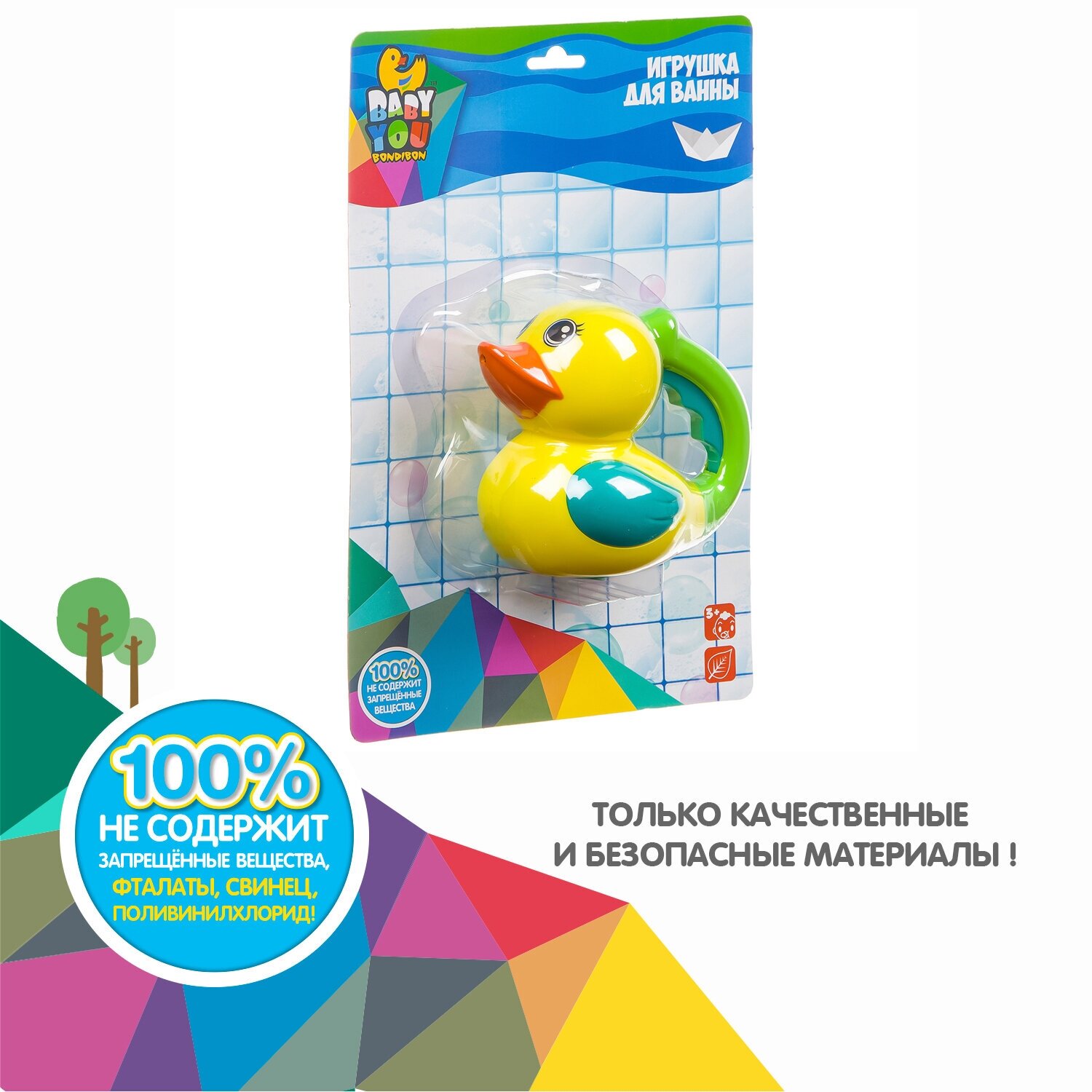 В качестве самой первой игрушки для купания отлично подойдут безопасные и яркие игрушки для купания Baby You Bondibon. Они сделают процесс принятия ванны непринужденным и увлекательным. Наполните уточку водой через отверстие на дне, и, нажимая на ручку, брызгайте водой. Такая веселая игра не только развлечет ребенка, но и поможет в развитии тактильных ощущений, внимания, пространственного мышления, моторики и общих двигательных навыков.